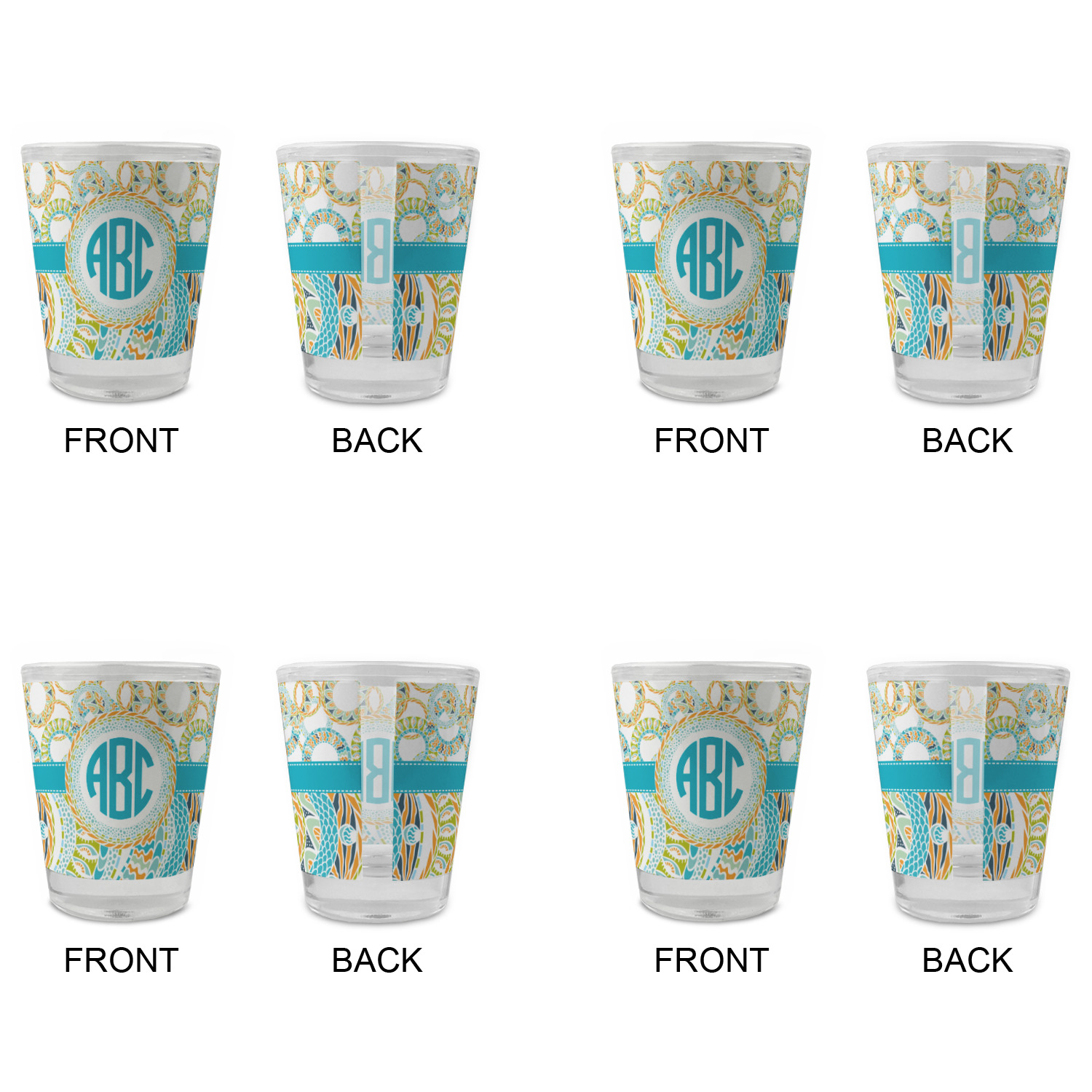 Made with frosted glass, these shot glasses are printed in full color with the design of your choice. They are a standard 1.5oz shot glass and are 2.4" tall. The print is wrapped around the shot glass in a full wrap and boldly displays your customization.