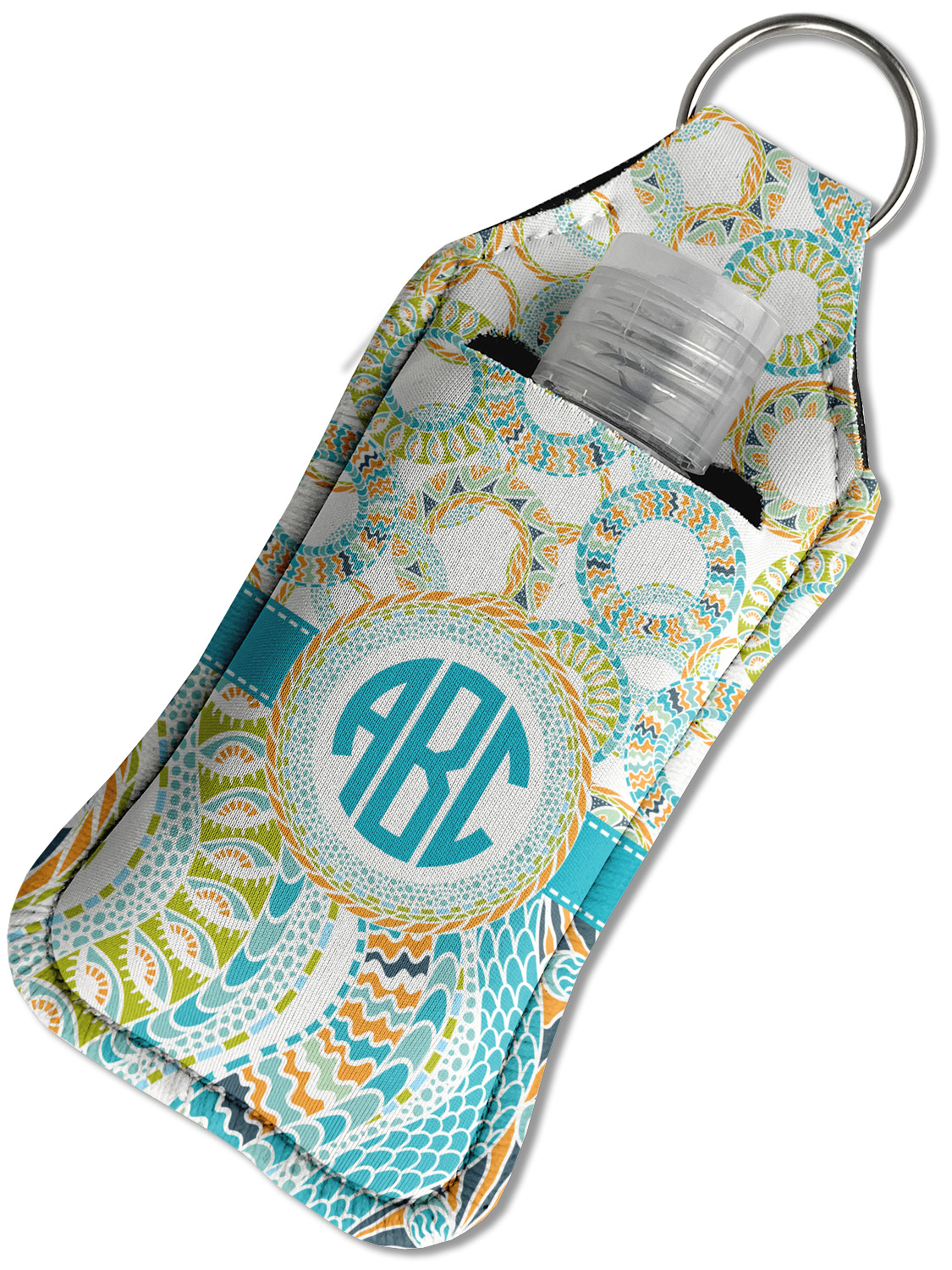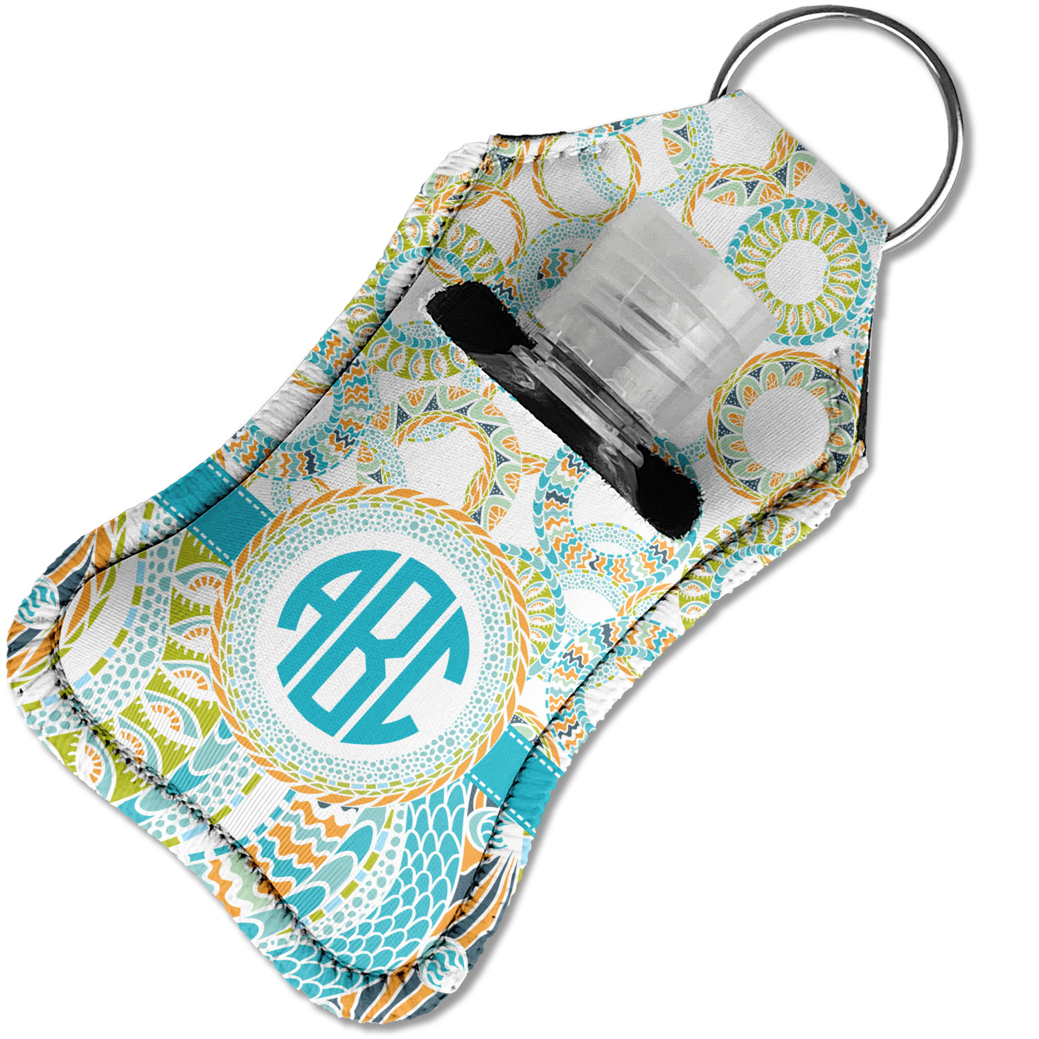 Each hand sanitizer holder comes with its own empty travel-sized, refillable hand sanitizer sure to fit snug in your customized sanitizer case! Our hand sanitizer cases are a durable, yet soft neoprene material sure to last any daily activities or travel agenda. Customize and personalize a hand sanitizer bottle holder with one of our two sizes - small (4.25" x 2.25") or large (5.5" x 2.5"). Each travel sanitizer holder comes with a keyring for attachment on bags, keys, or more!