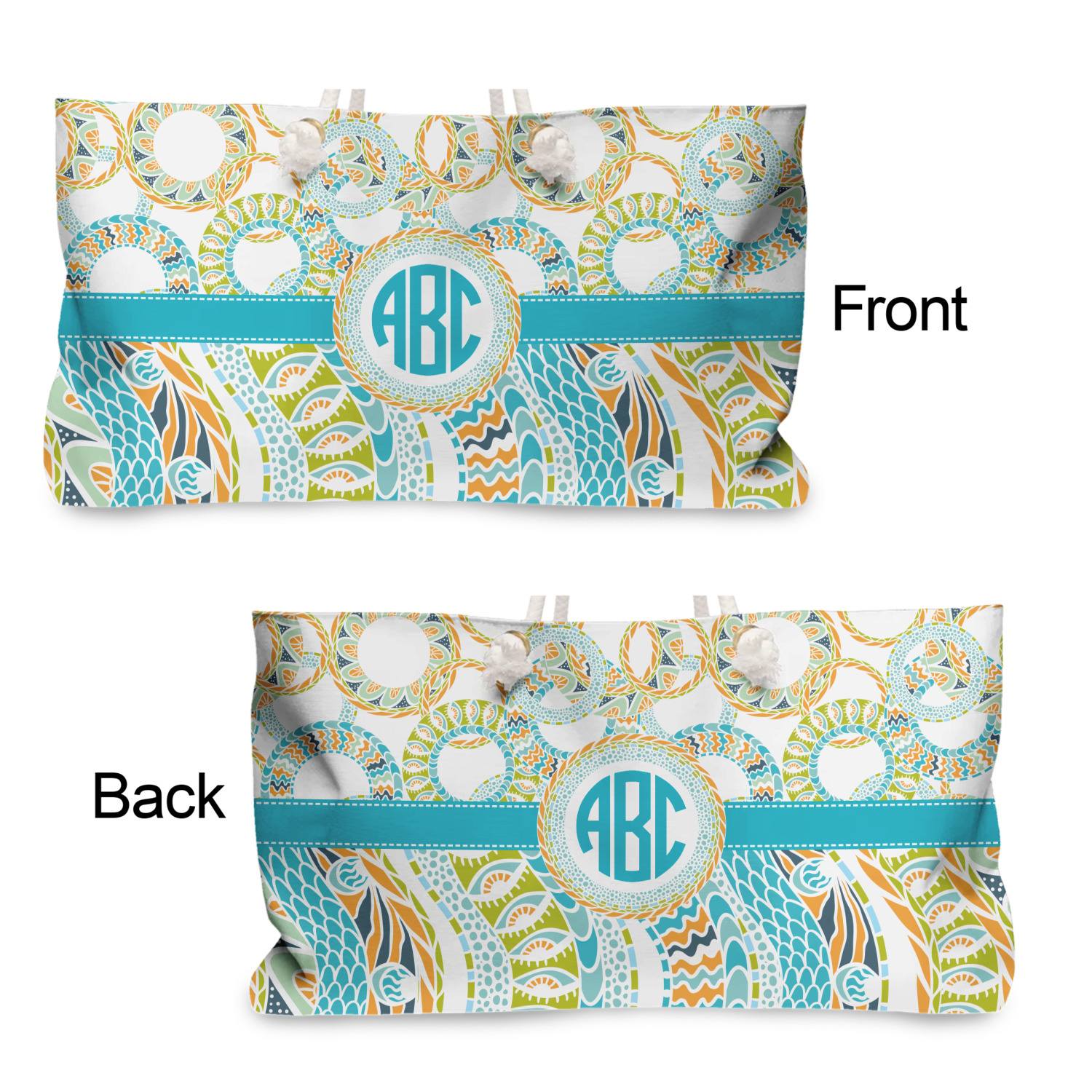 These weekender totes can be customized front and back. The totes are full all over print - so the choice of how background are endless - from beautiful floral or leaf patterns to geometrics or some classic Van Gogh artwork - the possibilities are endless. The totes can also be decorated with photos and logos.