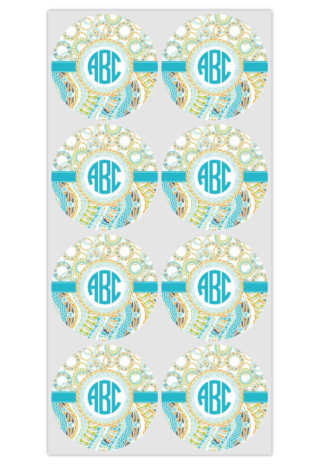 In the center of all the striped, rounded, and scaled mayhem is a white label, the eye of the storm, the perfect place for the personalization of your choice.