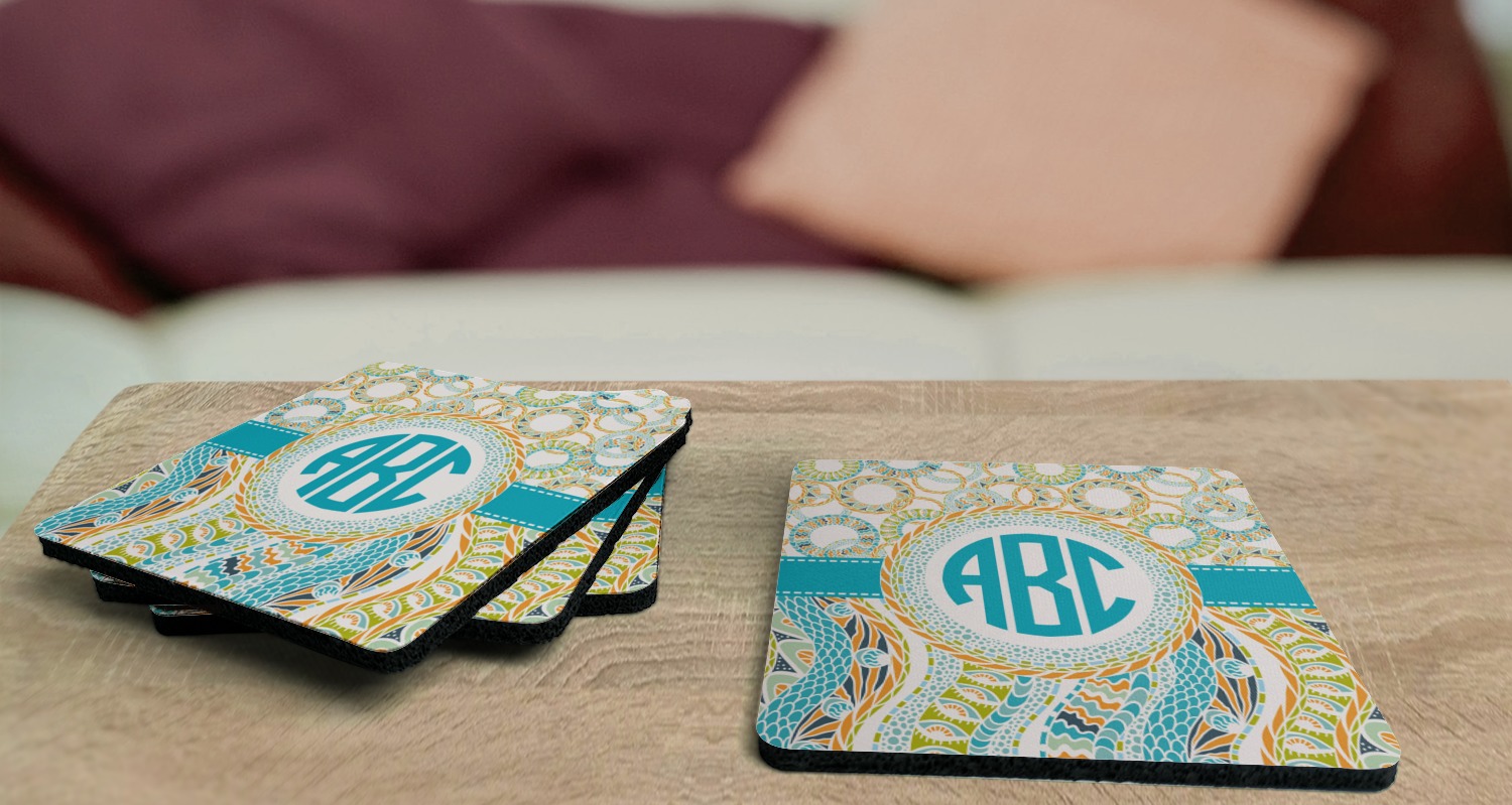 Replace your boring, run-of-the-mill coasters with a set of 4 personalized coasters! When personalized, these coasters will protect your beloved surfaces while adding to your home's decor! Thanks to your coasters bright colors and unique design, your guests will be eager to use them!