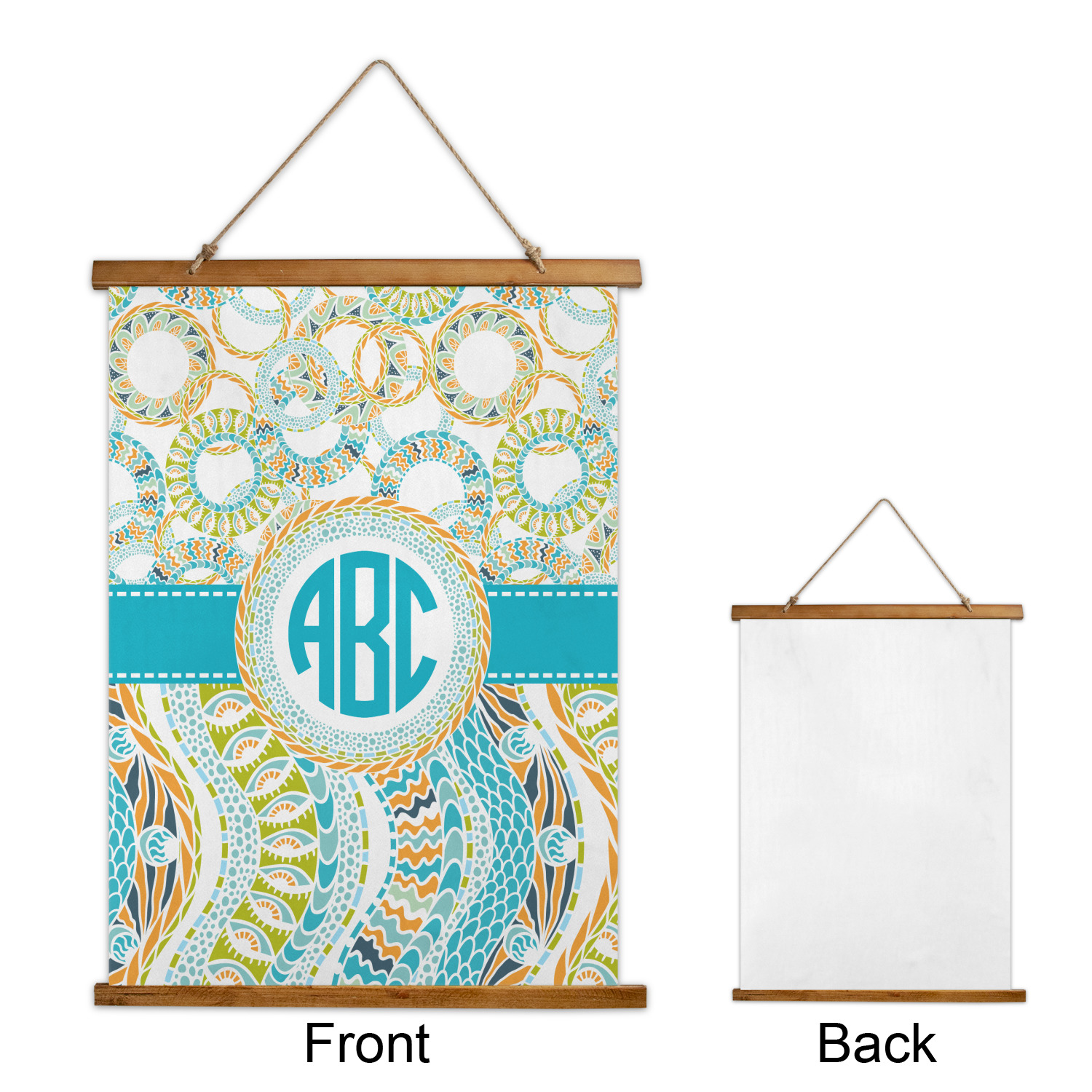 Made in two different orientations - portrait or landscape - both are 26" x 36". Your design is printed on a high quality polyester fabric with hemmed edges. The wood on the top and bottom of the tapestry is 1.25" tall and 0.25" thick and there are two pieces on top and bottom which sandwich the fabric.