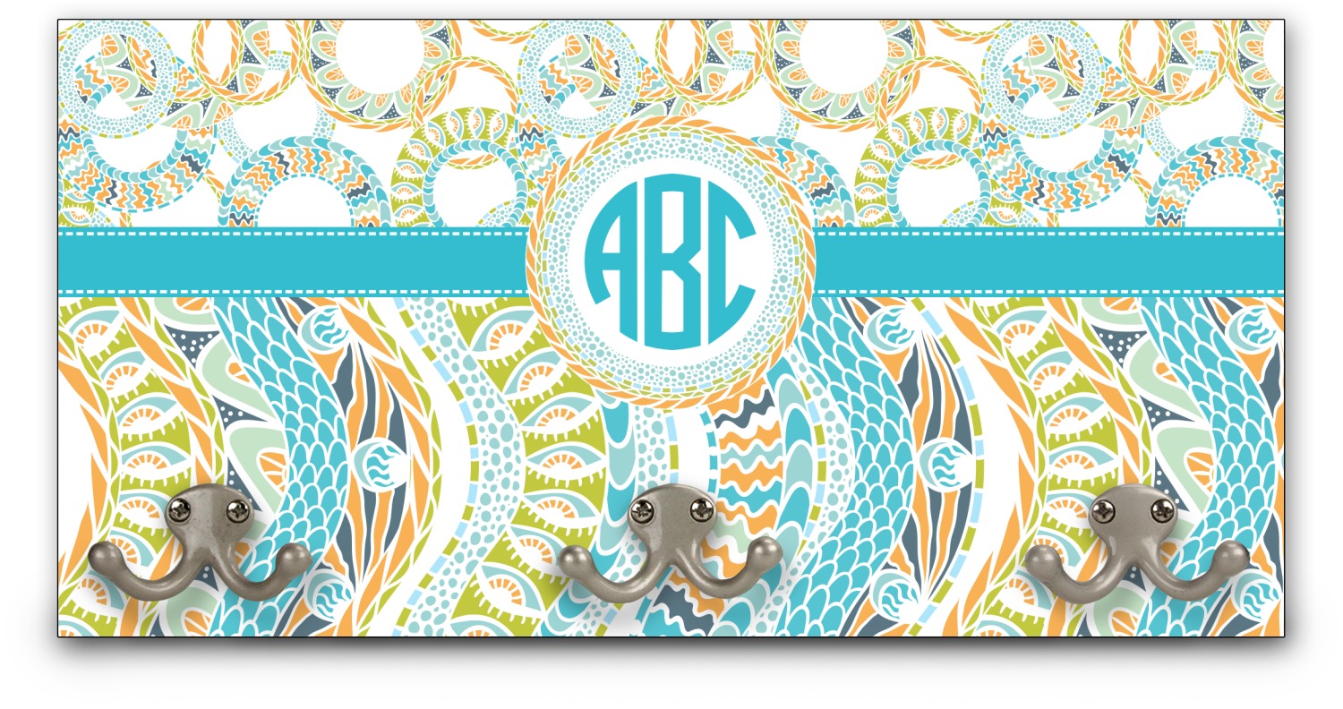 This coat rack is the perfect way to add some personality to your wall or entryway. The board is made of a strong maple that is approximately 16" x 8". The three 2-prong hooks are a sturdy metal that have three screws attaching them to the board. Your design is printed right onto the front of the board while the back and sides are a simple black.