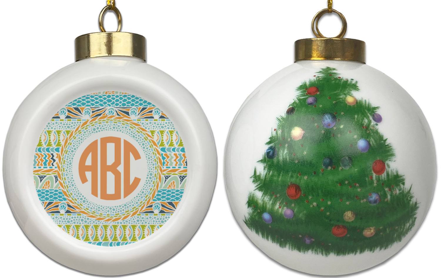 Our Christmas ornaments are a unique ceramic ball shape with a twist as it has a flat face to display your custom design! Select from one of our two design types - Christmas Tree or Poinsettia Garland - to adorn the curved back of your personal design. Each ornament measures 3H x 2.5W x 2D accompanied with a gold string accent for finishing touches to hang on your beautiful Christmas tree!
