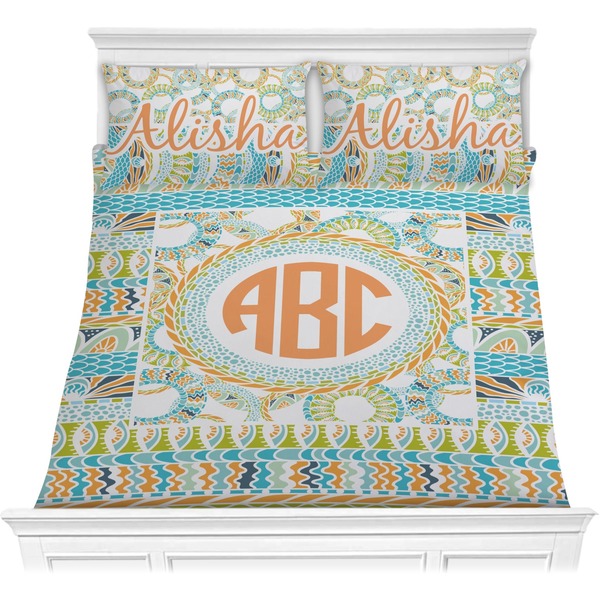 Both, the comforter and shams are digitally printed; all the fabric is then cut and sewn to make your custom comforter or comforter set.