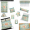 Love the colors and patterns in this design. It is a stunning combination of ribbons and labels in stunning teals with orange accent . This collection has four pattern repeats in it - the two you see here and two additional ones with wavy ribbons. Use the four to create a stunning bedroom or bathroom.