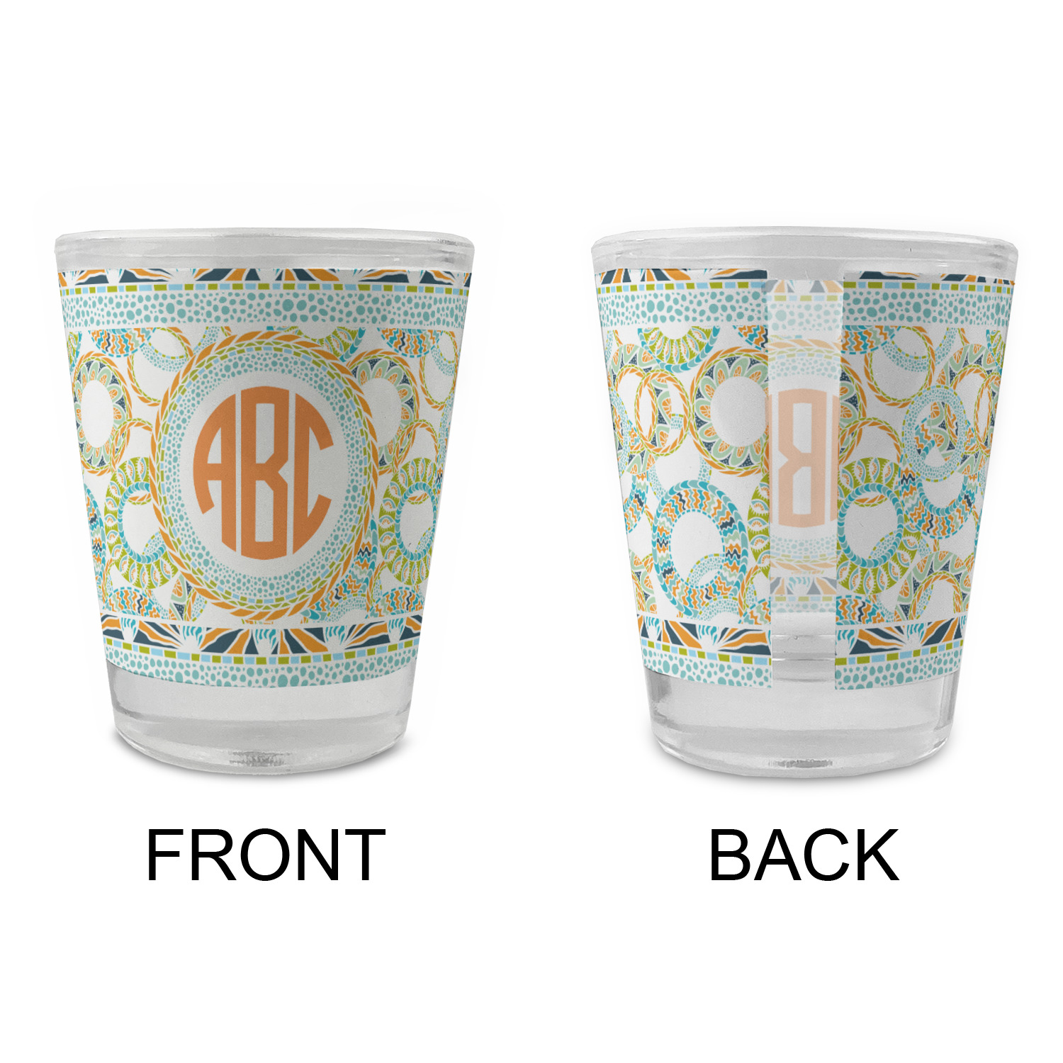 Made with frosted glass, these shot glasses are printed in full color with the design of your choice. They are a standard 1.5oz shot glass and are 2.4" tall. The print is wrapped around the shot glass in a full wrap and boldly displays your customization.