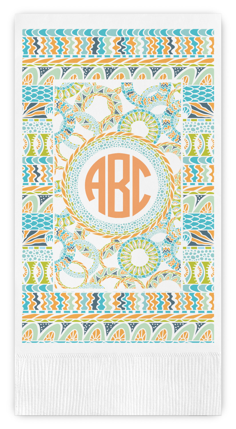 For our teal ribbon & labels design, we chose the straight ribbons with the labels in the concentric style. We chose a coordinating label with a circle monogram for personalization in the coordinating orange.