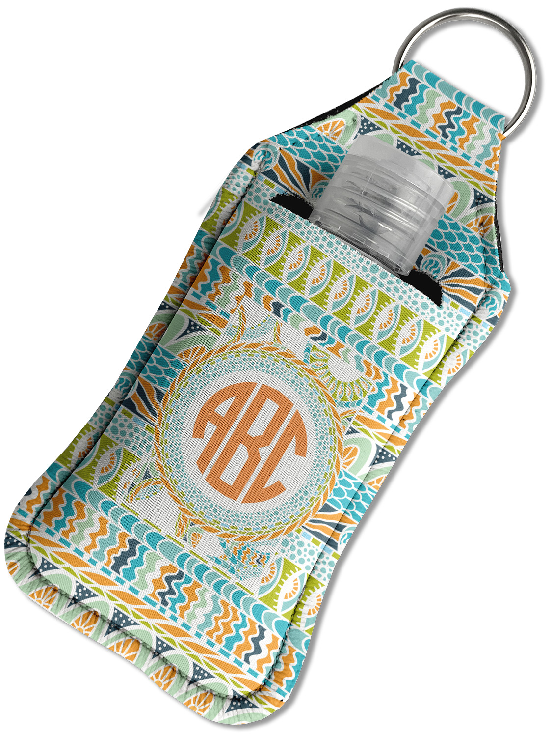 Each hand sanitizer holder comes with its own empty travel-sized, refillable hand sanitizer sure to fit snug in your customized sanitizer case! Our hand sanitizer cases are a durable, yet soft neoprene material sure to last any daily activities or travel agenda. Customize and personalize a hand sanitizer bottle holder with one of our two sizes - small (4.25" x 2.25") or large (5.5" x 2.5"). Each travel sanitizer holder comes with a keyring for attachment on bags, keys, or more!