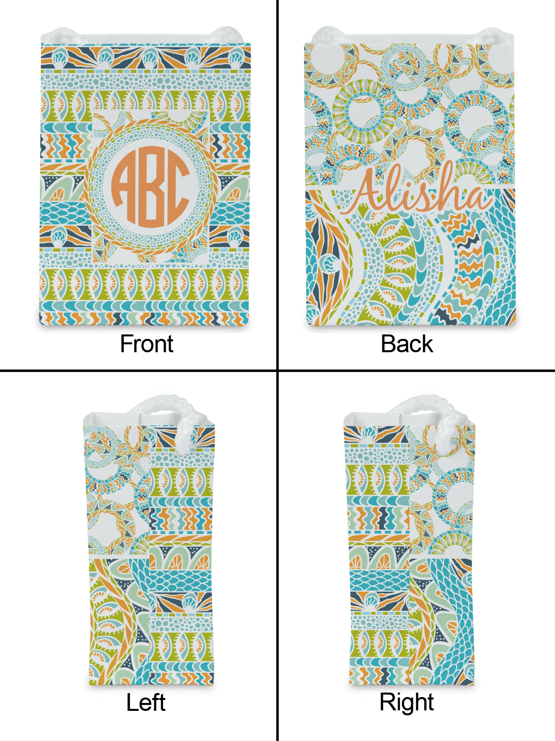These jewelry gift bags are available in two finishes - matte or gloss. The are digitally printed in full color, then cut down to size, scored & folded. A single handle is attached.