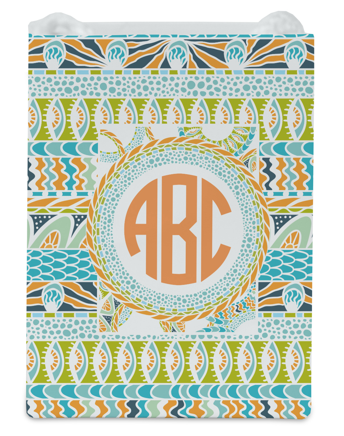 For our teal ribbon & labels design, we chose the straight ribbons with the labels in the concentric style. We chose a coordinating label with a circle monogram for personalization in the coordinating orange.