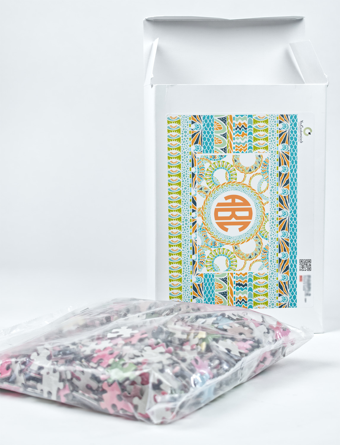 You can also upload your logo or art that you or your kids drew. To create more challenging jigsaw puzzles, you can create a pattern from with your logo or artwork. You can also add other elements such as text or personalization.
