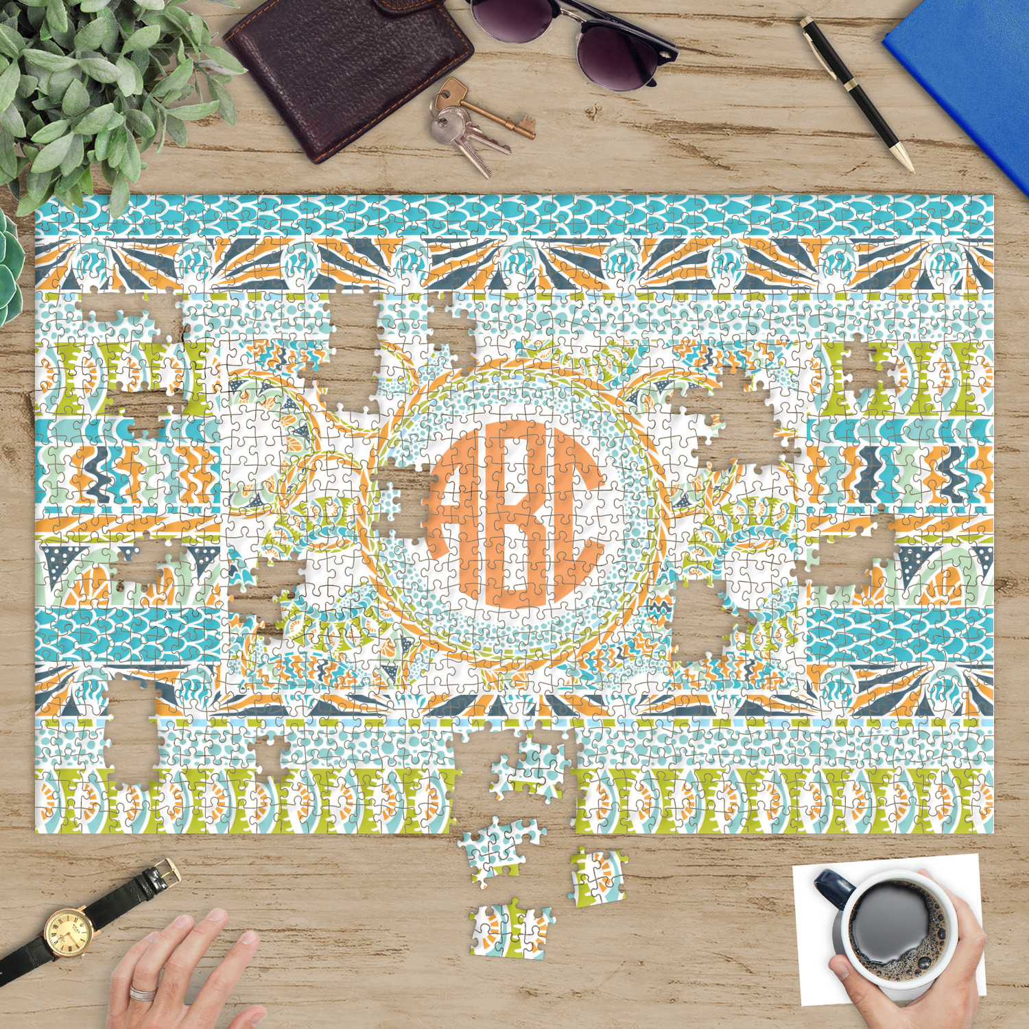 Depending on the look you are trying to achieve, you can add; a thematic pattern or background, with a photo in a frame and text or personalization to your puzzle. Basically if you can imagine it, you can design it!