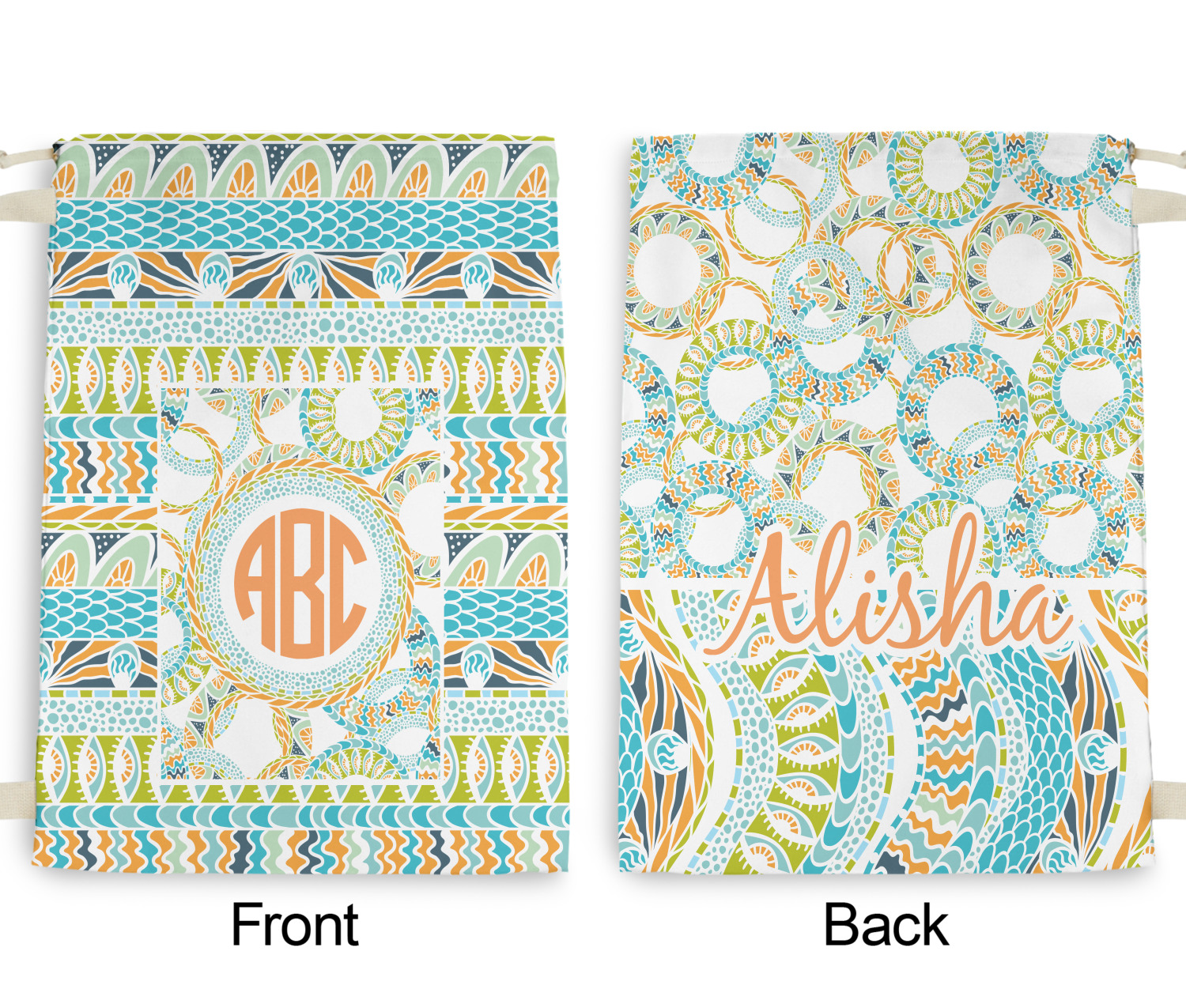 Carry your laundry in style with these customized laundry bags. Available in two sizes, featuring a natural colored woven strap and a cinch cord, these bags hold a lot of clothes or anything else you want to fit in them.