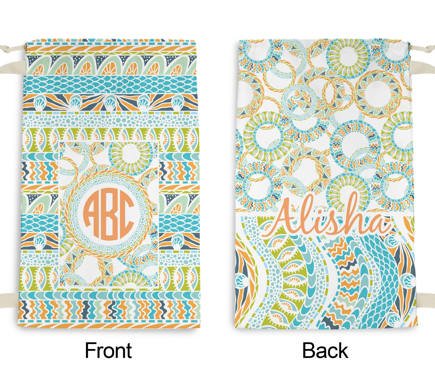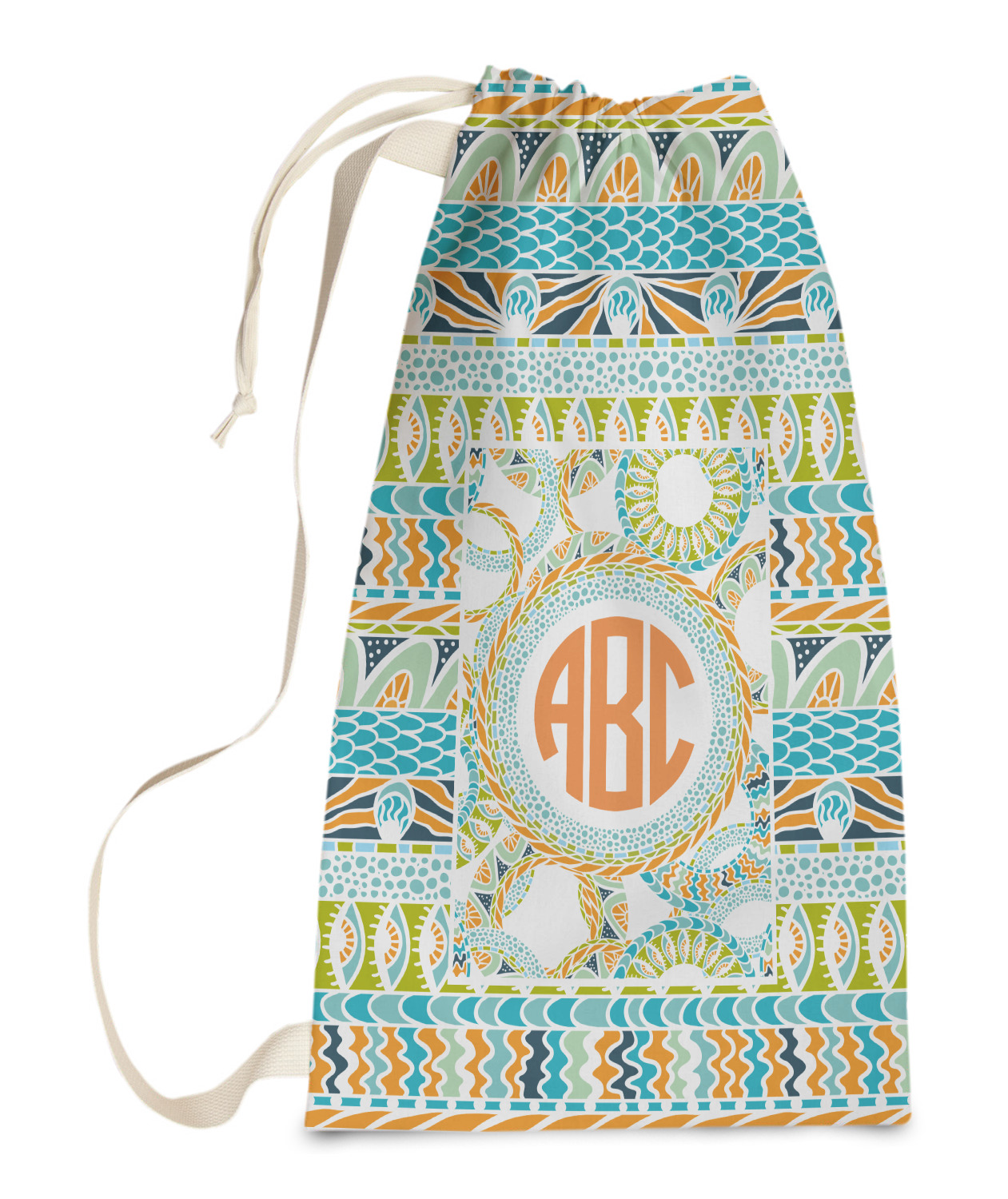 Carry your laundry in style with these customized laundry bags. Available in two sizes, featuring a natural colored woven strap and a cinch cord, these bags hold a lot of clothes or anything else you want to fit in them.