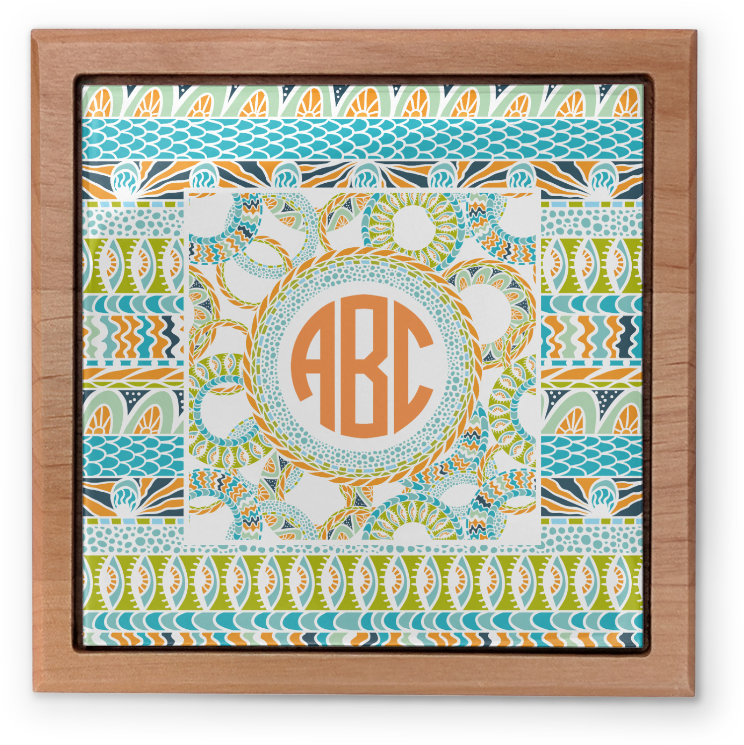 For our teal ribbon & labels design, we chose the straight ribbons with the labels in the concentric style. We chose a coordinating label with a circle monogram for personalization in the coordinating orange.