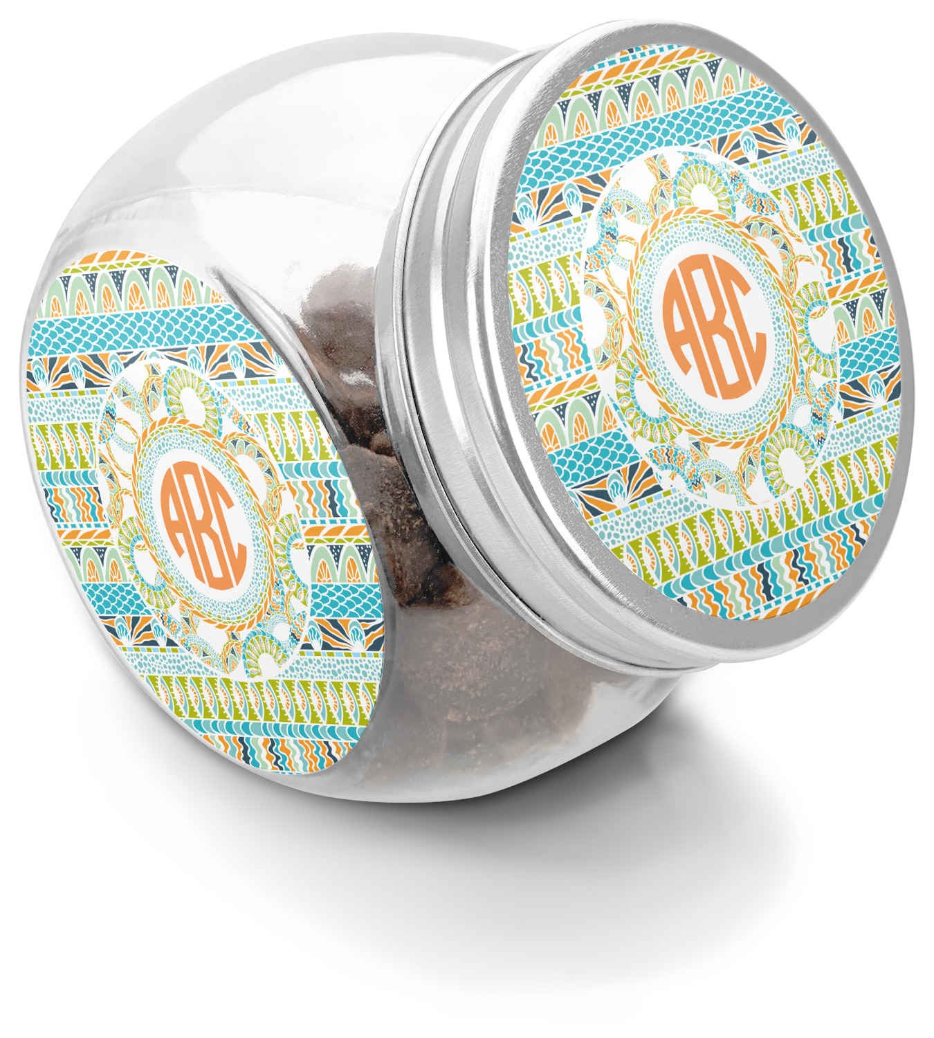 This treat jar is an excellent way to store treats for your favorite canine or feline. Moreover, their delicate, classy appearance makes them a tasteful addition to your countertop's décor. Crafted from clear glass, its unique construction and silver metal, screw-on lid allows for quick and easy access. Three, permanent, vinyl stickers are applied to both sides of the jar and lid, presenting your personalized design. The base of this glass, dog treat jar is 3.4" x 4.75", and the jar stands at 5" tall. Though on the smaller side, this jar is best suited for smaller treats or training treats.