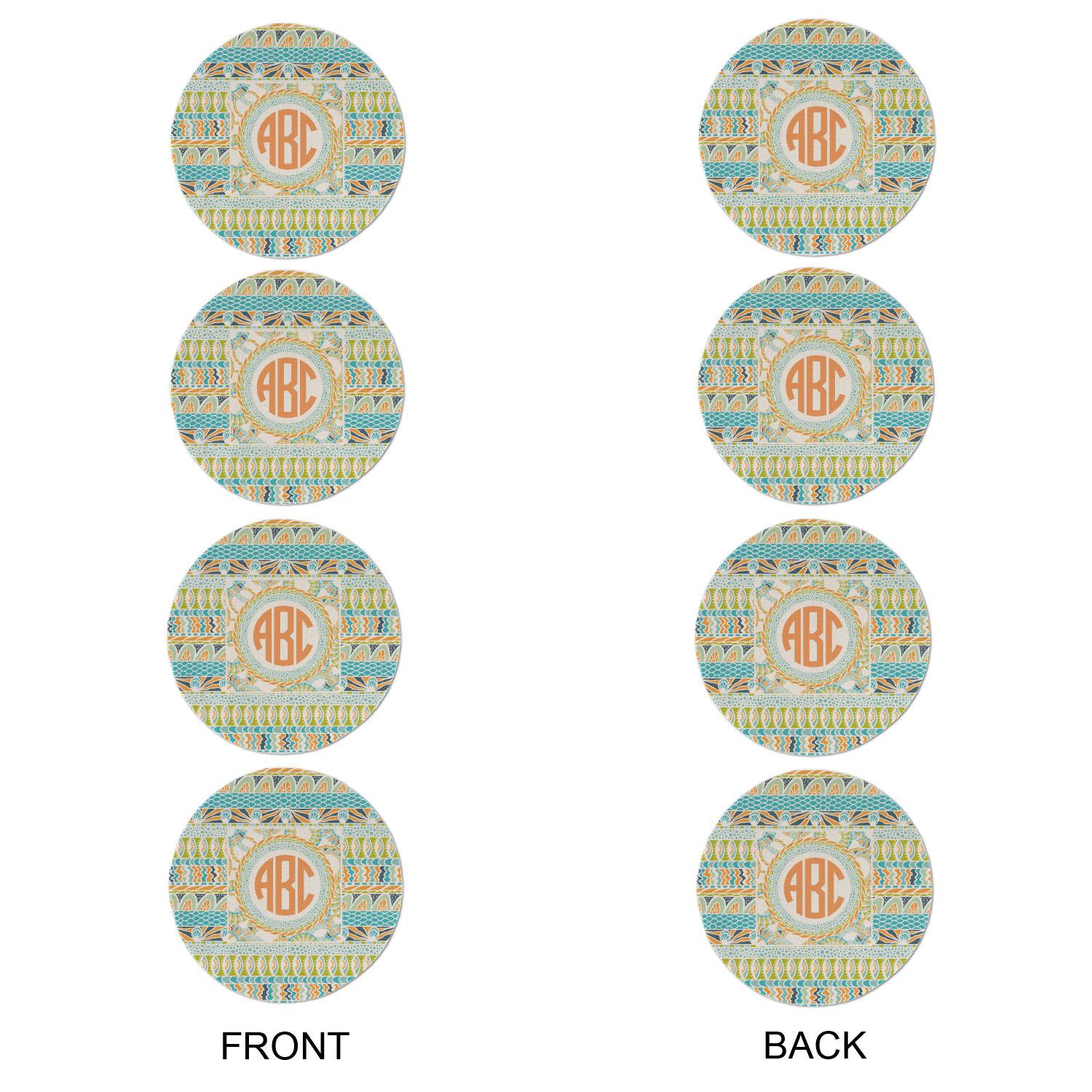 For our teal ribbon & labels design, we chose the straight ribbons with the labels in the concentric style. We chose a coordinating label with a circle monogram for personalization in the coordinating orange.