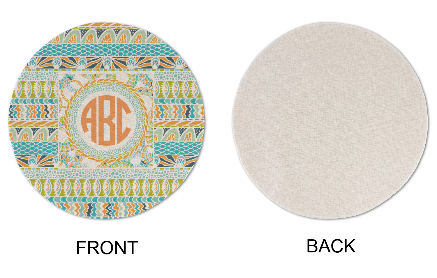 For our teal ribbon & labels design, we chose the straight ribbons with the labels in the concentric style. We chose a coordinating label with a circle monogram for personalization in the coordinating orange.
