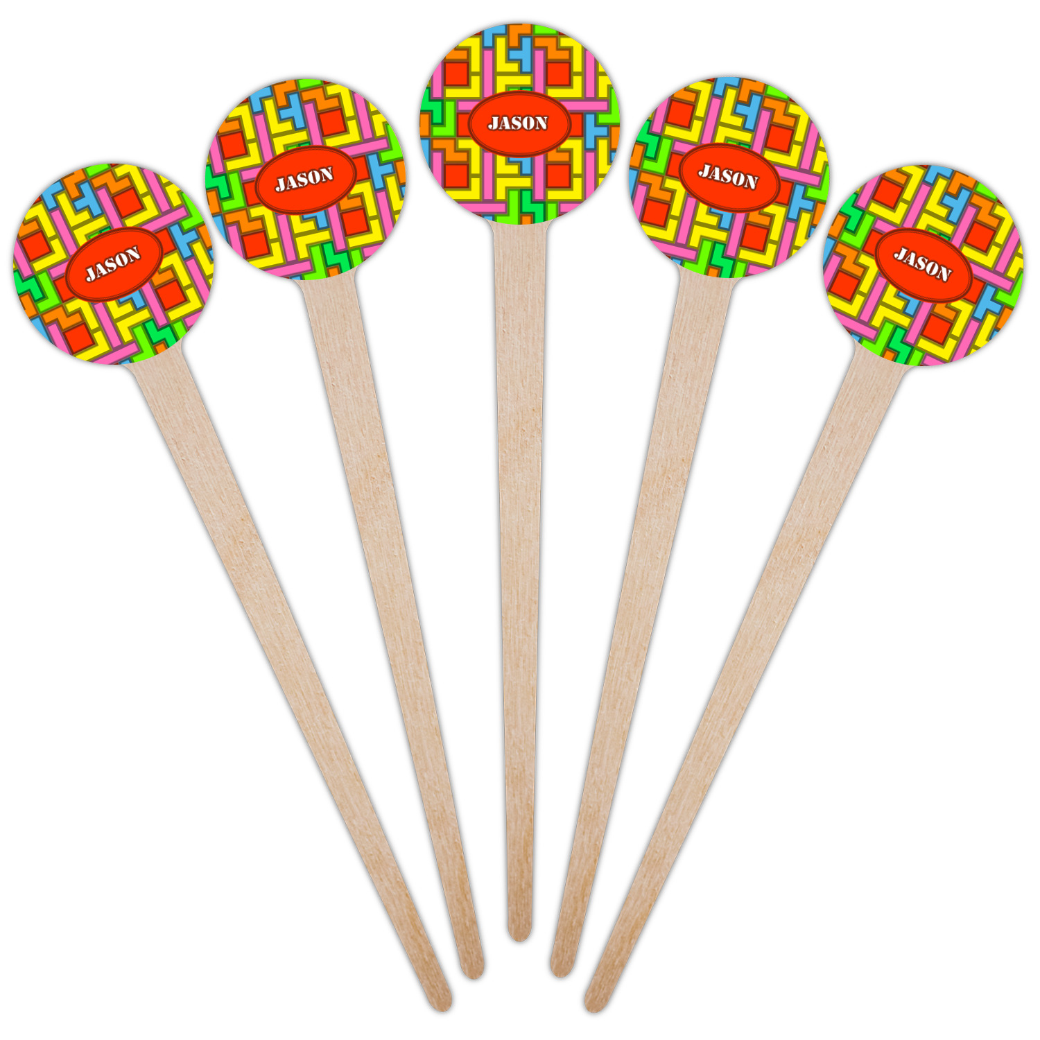 Shape + Symbol Designs for 4" Round Wooden Food Picks - Single-Sided