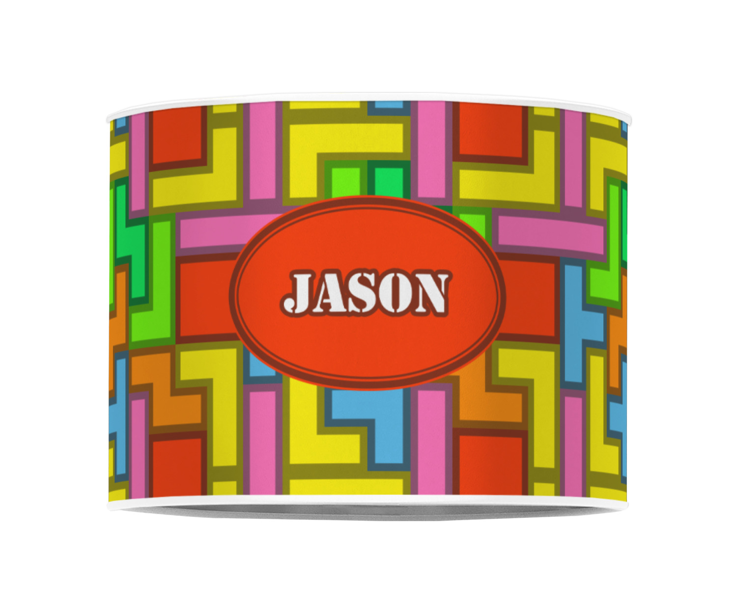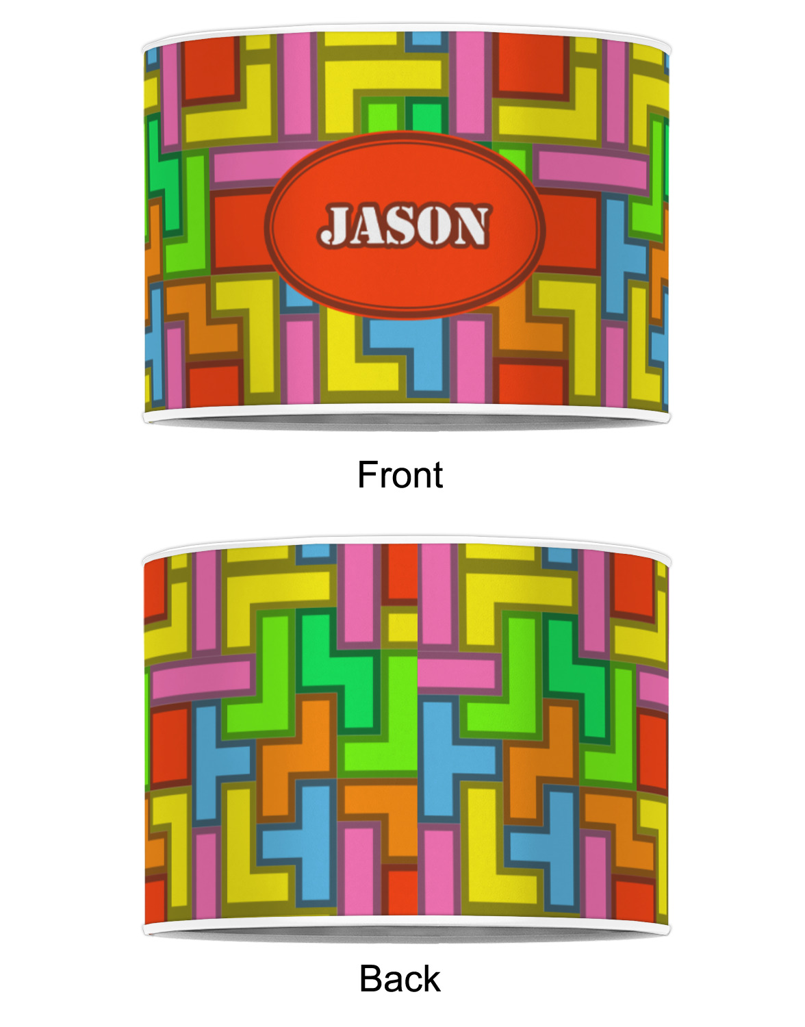 The tetromino print offers all the classic colors and shapes to delight a true gamer. A big oval label breaks up the pattern and highlights the personalization of your choice.