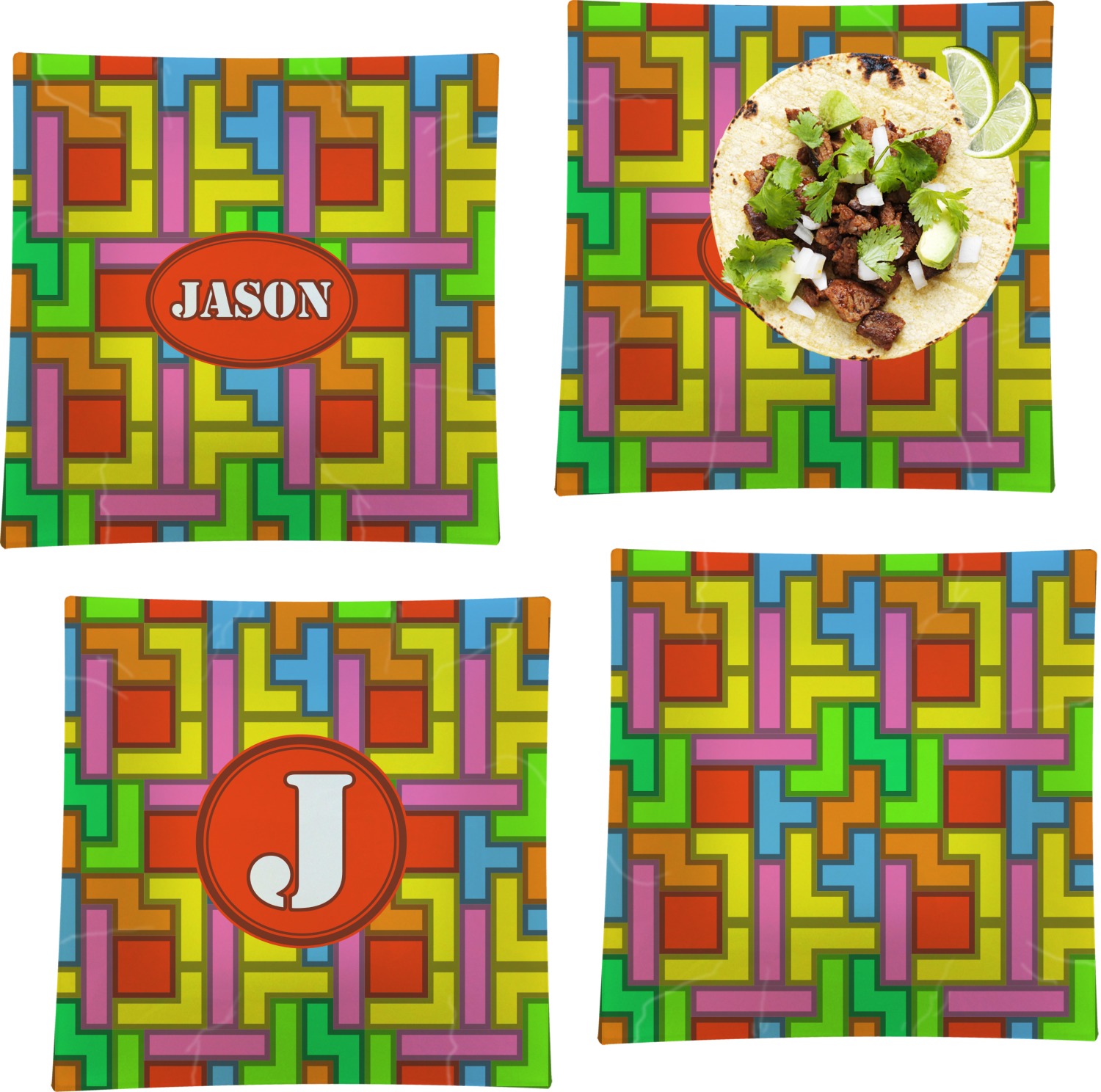 The tetromino print offers all the classic colors and shapes to delight a true gamer. A big oval label breaks up the pattern and highlights the personalization of your choice.