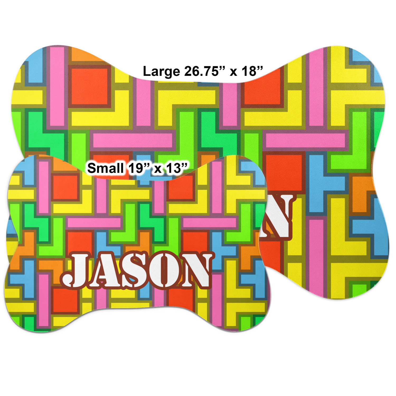 The bone-shaped dog bowl mat is the perfect way to add a touch of personality to your dog's eating area! Dogs make inevitable messes, especially when they eat and drink. Save the integrity of your floors and the time spent cleaning them by purchasing a personalized mat that catches spills!