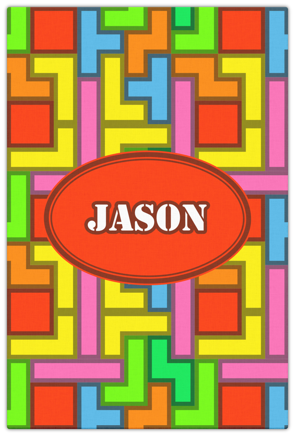 The tetromino print offers all the classic colors and shapes to delight a true gamer. A big oval label breaks up the pattern and highlights the personalization of your choice.