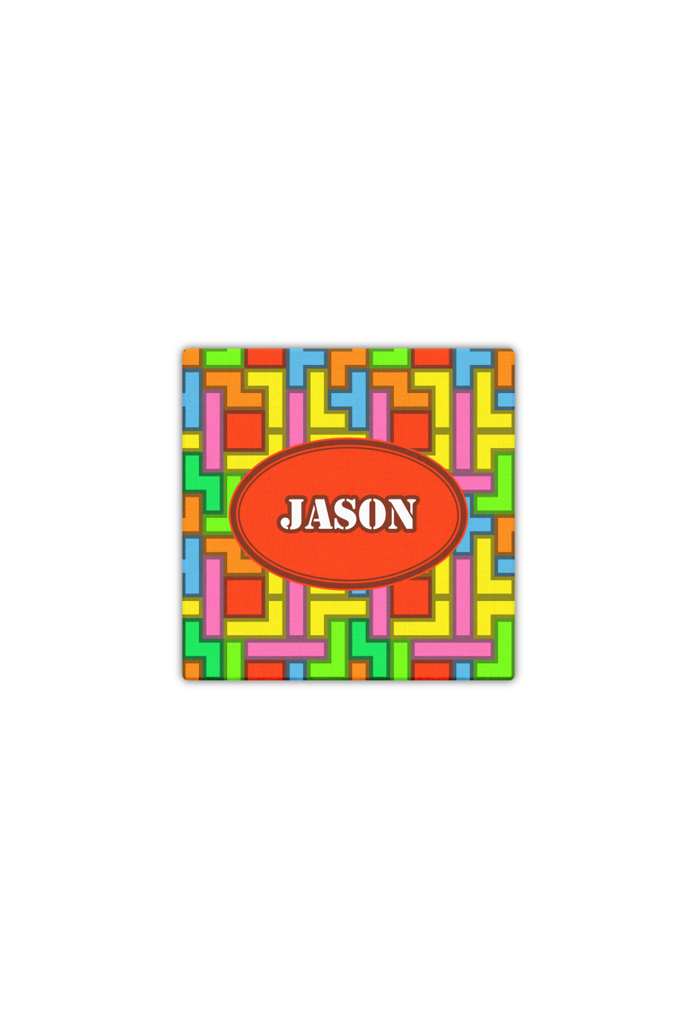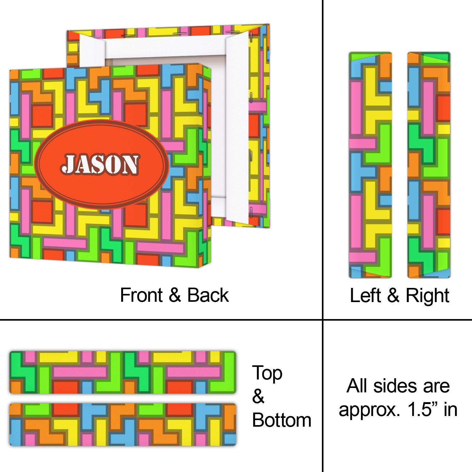 The tetromino print offers all the classic colors and shapes to delight a true gamer. A big oval label breaks up the pattern and highlights the personalization of your choice.