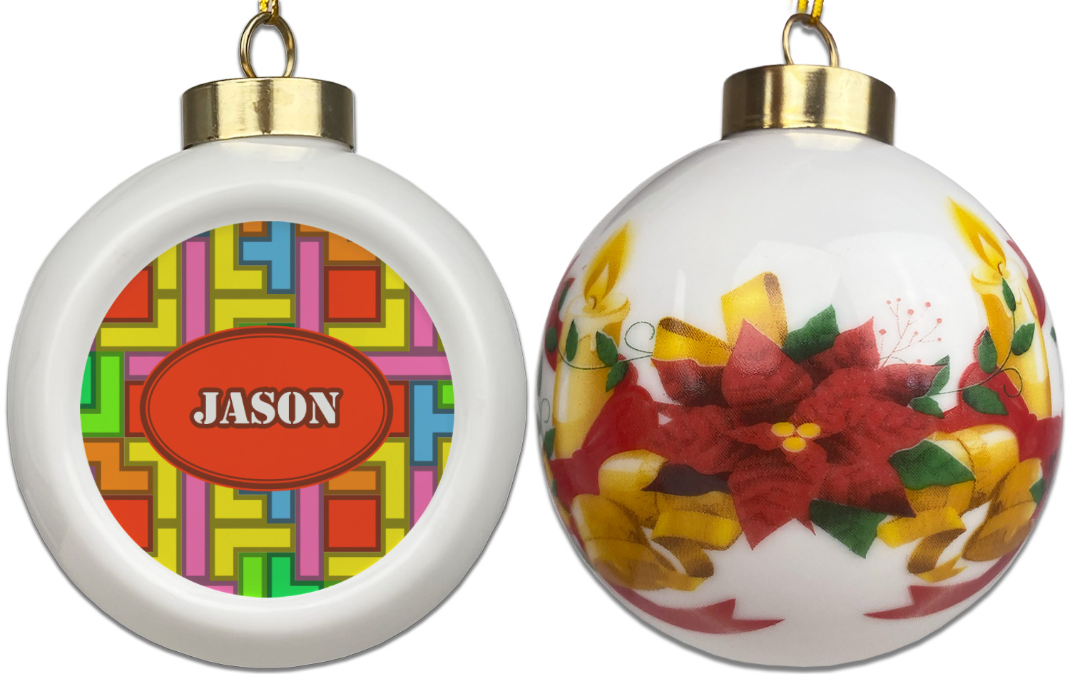 Our Christmas ornaments are a unique ceramic ball shape with a twist as it has a flat face to display your custom design! Select from one of our two design types - Christmas Tree or Poinsettia Garland - to adorn the curved back of your personal design. Each ornament measures 3H x 2.5W x 2D accompanied with a gold string accent for finishing touches to hang on your beautiful Christmas tree!