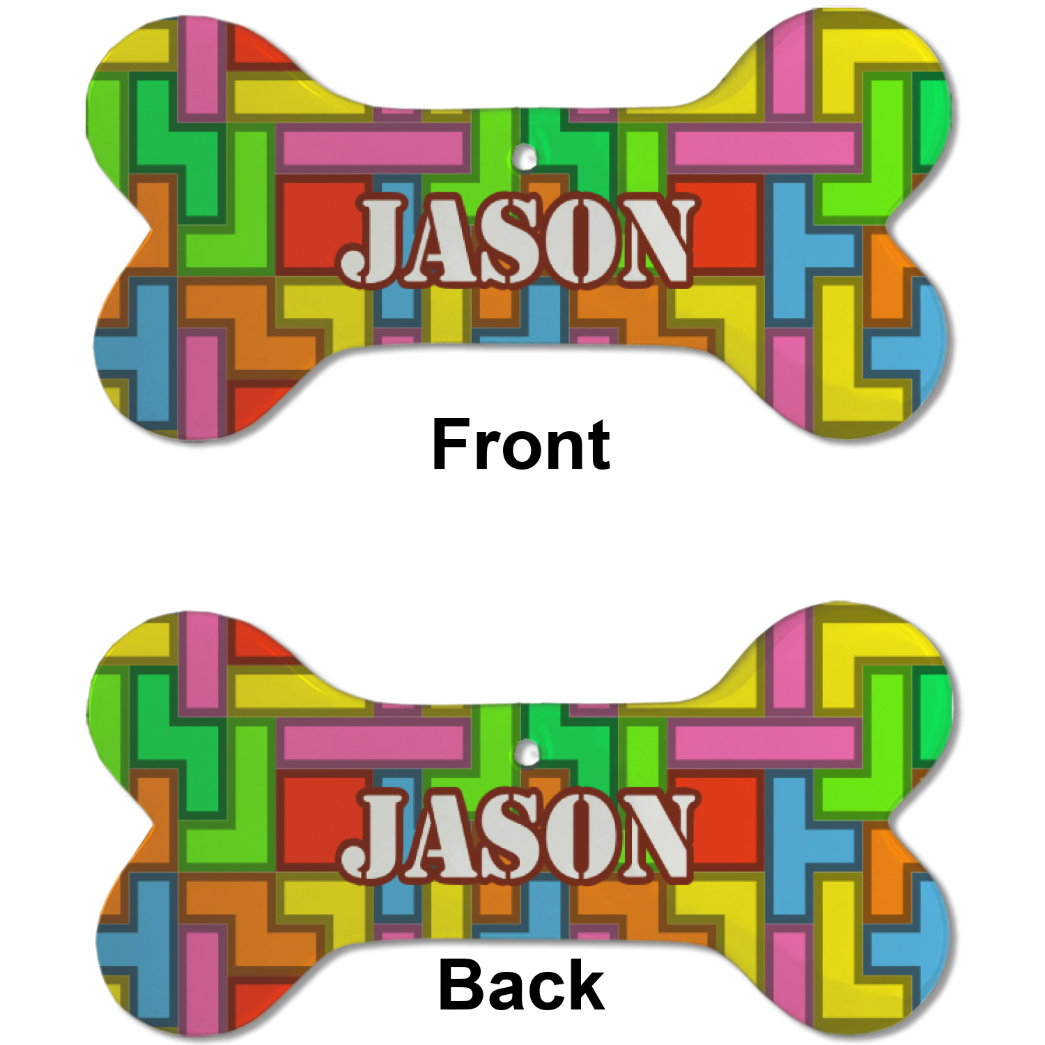 The tetromino print offers all the classic colors and shapes to delight a true gamer. A big oval label breaks up the pattern and highlights the personalization of your choice.