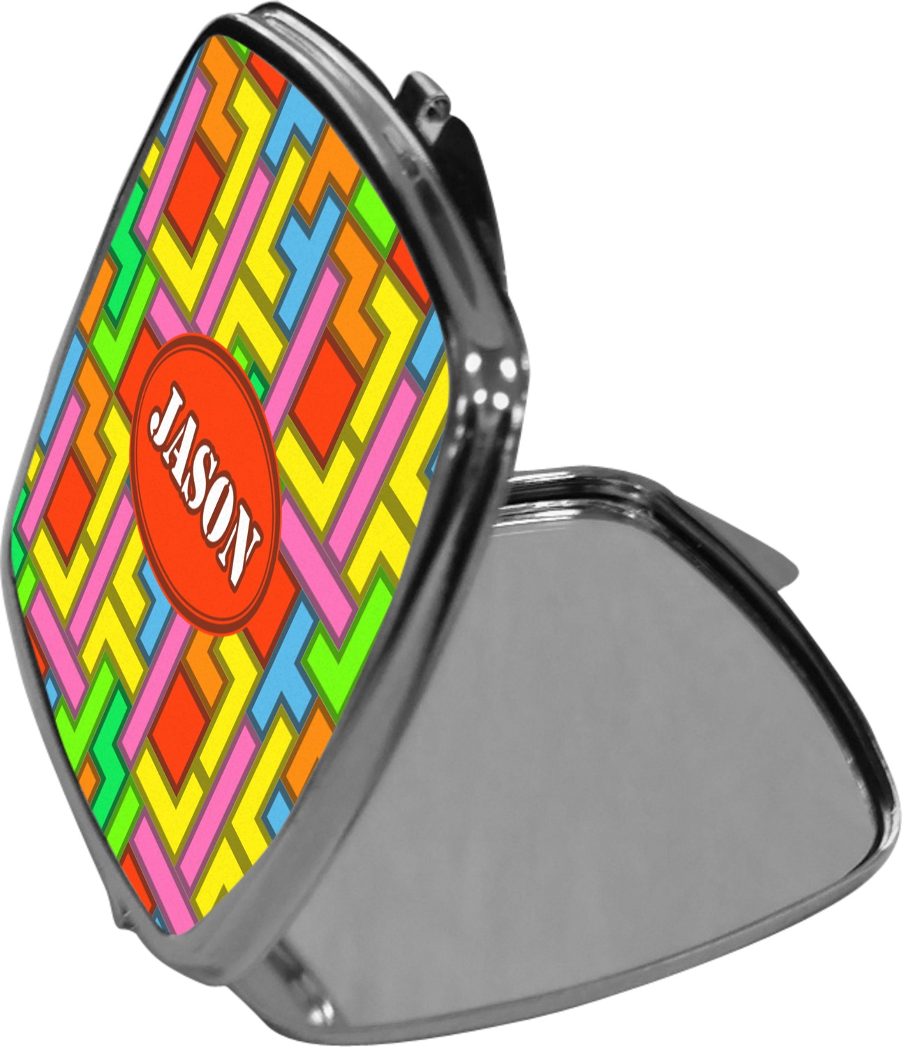 We offer many prints and patterns and many of our patterns are available in 45 different colors. You can personalized the compact mirrors with a name, a monogram or just an initial. We offer several different label, ribbon and font choices. Our customization system lets you create your very own custom & unique product and it lets you preview it before you purchase.