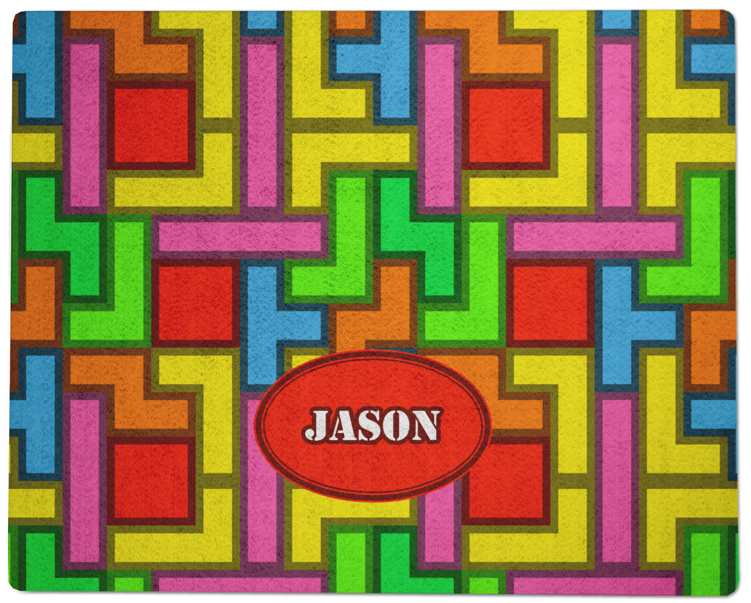 The tetromino print offers all the classic colors and shapes to delight a true gamer. A big oval label breaks up the pattern and highlights the personalization of your choice.