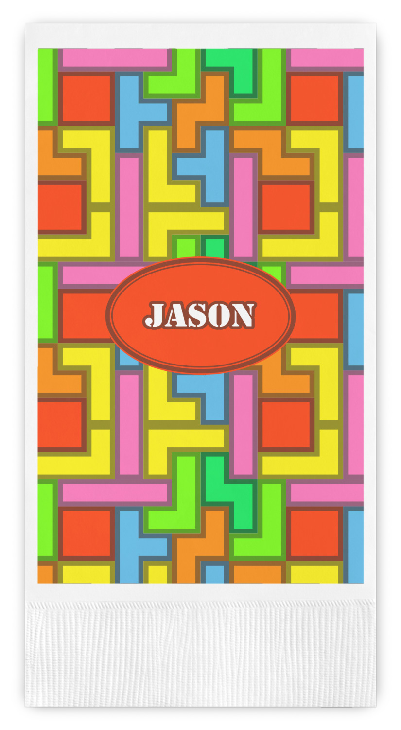 The tetromino print offers all the classic colors and shapes to delight a true gamer. A big oval label breaks up the pattern and highlights the personalization of your choice.