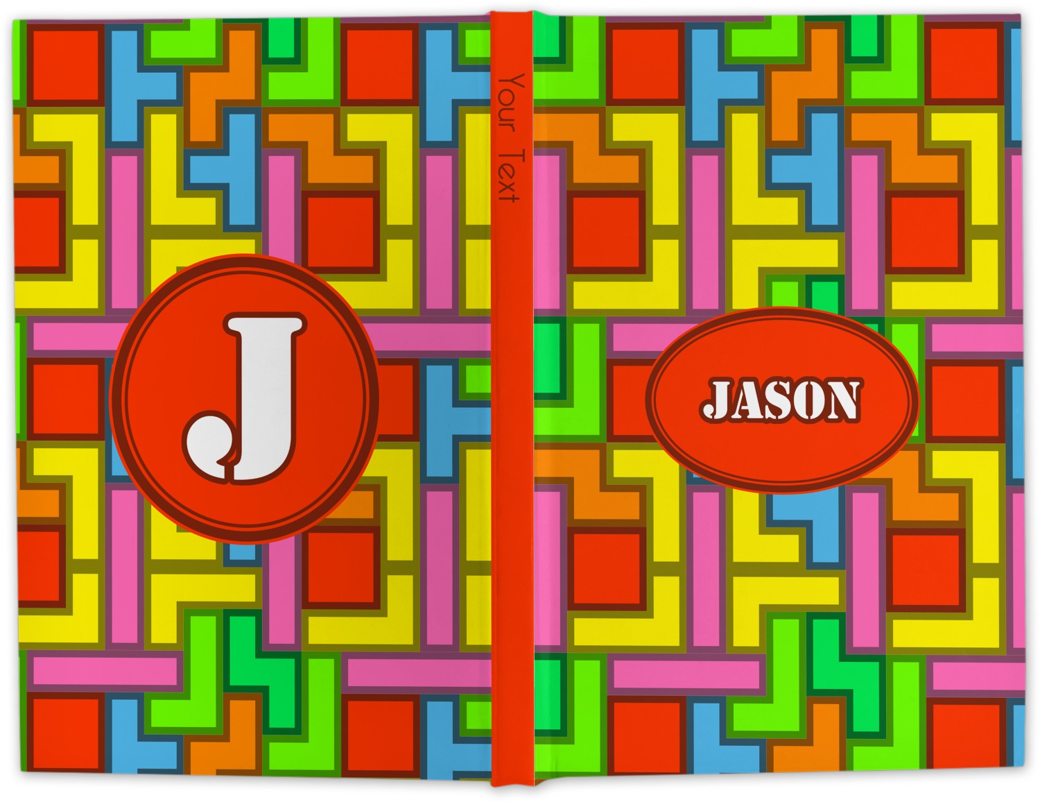 The tetromino print offers all the classic colors and shapes to delight a true gamer. A big oval label breaks up the pattern and highlights the personalization of your choice.