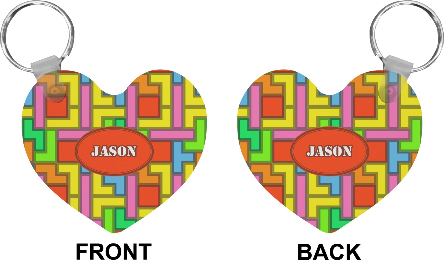 Our personalized keychains attach to the included metal, split key ring with a plastic, removable snap. Since a metal ring is included with your purchase, you have the liberty to keep your keys together on the ring, with or without your unique keychain. We offer this keychain in three different shapes: circle, heart, or diamond. We print your personalized design(s) on both sides of the key chain, and the surface has a glossy, reflective finish that only emphasizes your design. Each keychain is approximately 2.25 by 2.25 inches.