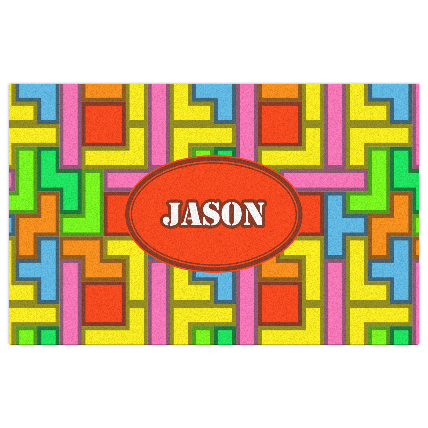 The tetromino print offers all the classic colors and shapes to delight a true gamer. A big oval label breaks up the pattern and highlights the personalization of your choice.