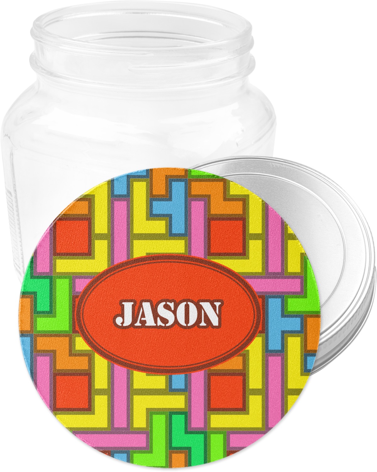 The tetromino print offers all the classic colors and shapes to delight a true gamer. A big oval label breaks up the pattern and highlights the personalization of your choice.