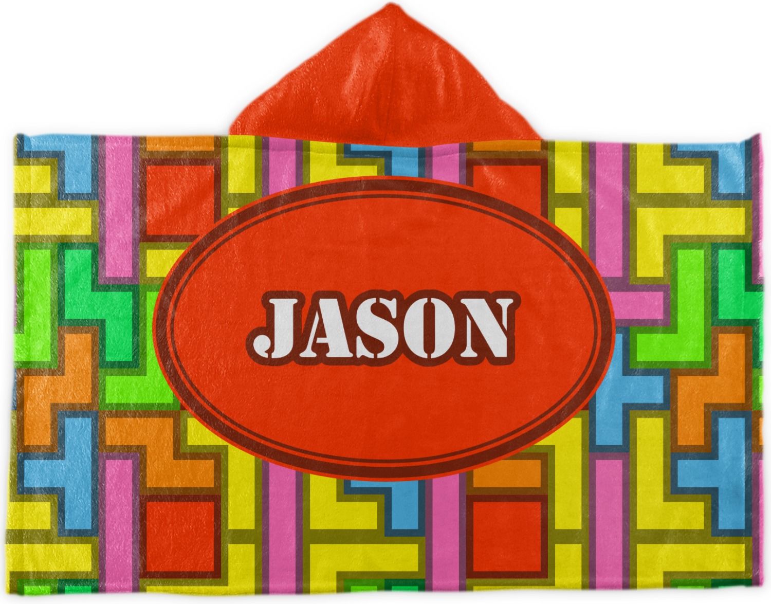 The tetromino print offers all the classic colors and shapes to delight a true gamer. A big oval label breaks up the pattern and highlights the personalization of your choice.