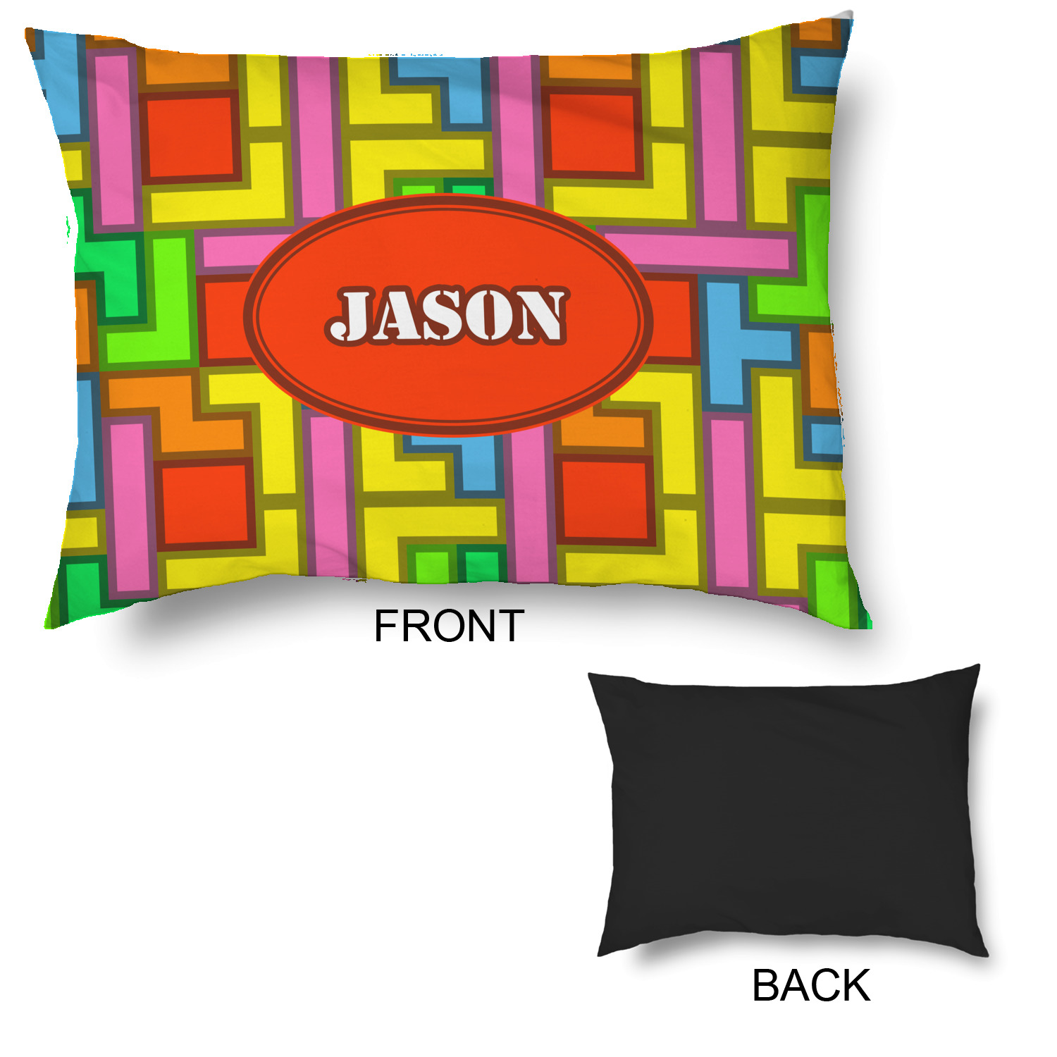 The tetromino print offers all the classic colors and shapes to delight a true gamer. A big oval label breaks up the pattern and highlights the personalization of your choice.