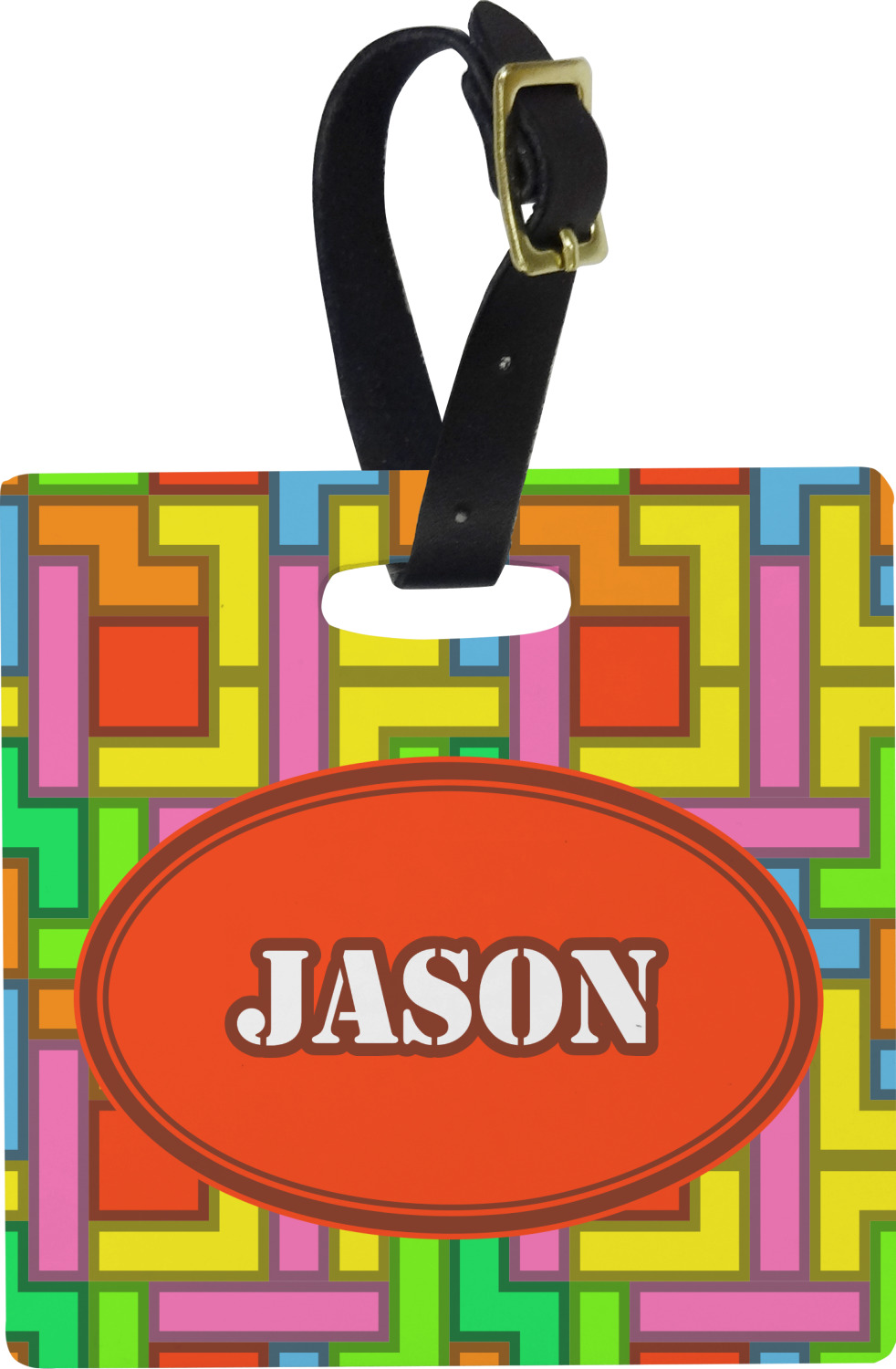 These personalized bag tags are sold in a variety of shapes, so that you may find the product that meets your vision exactly. We sell a round luggage tag, which measures at approximately 4" x 4". Our square luggage tag is about 3.5" x 3.5", while our rectangular version is 2.75" x 4 ".