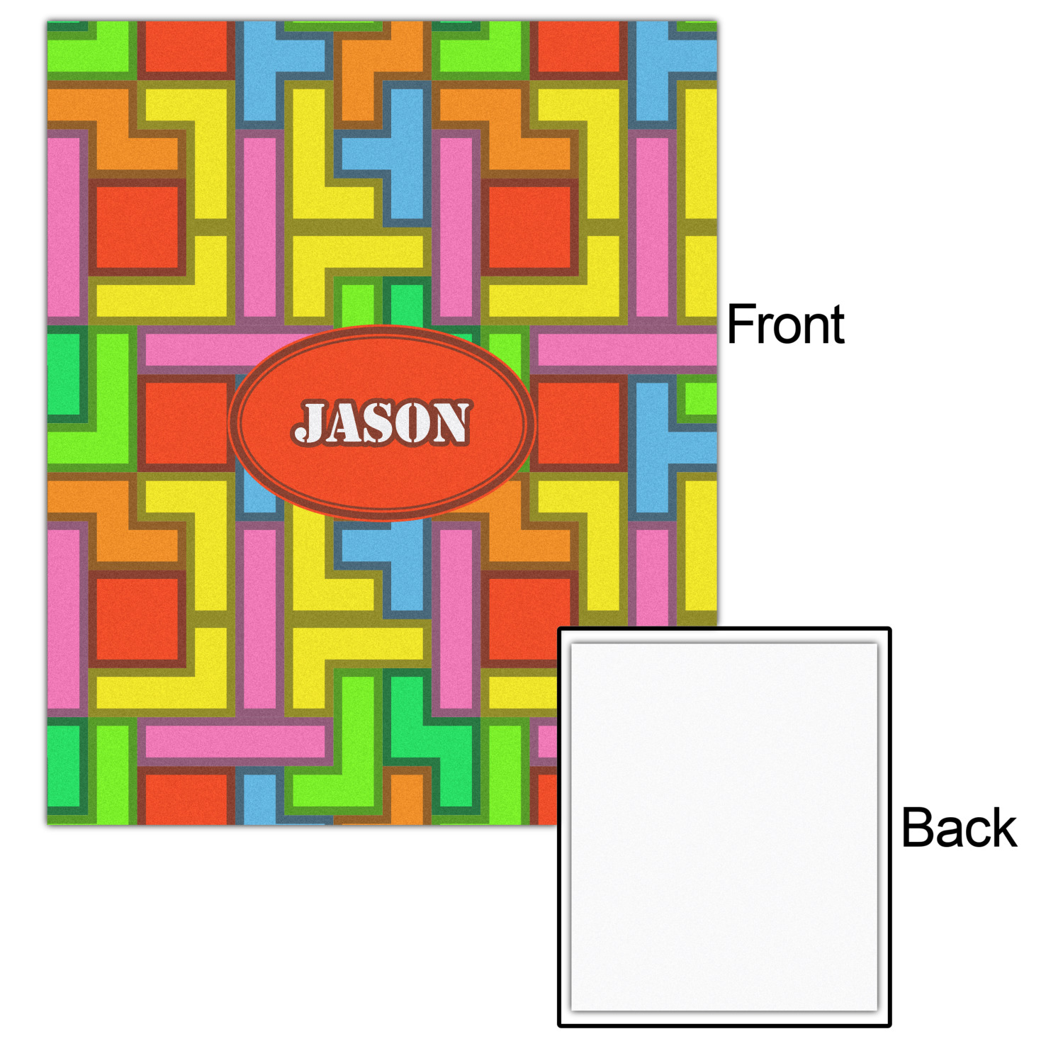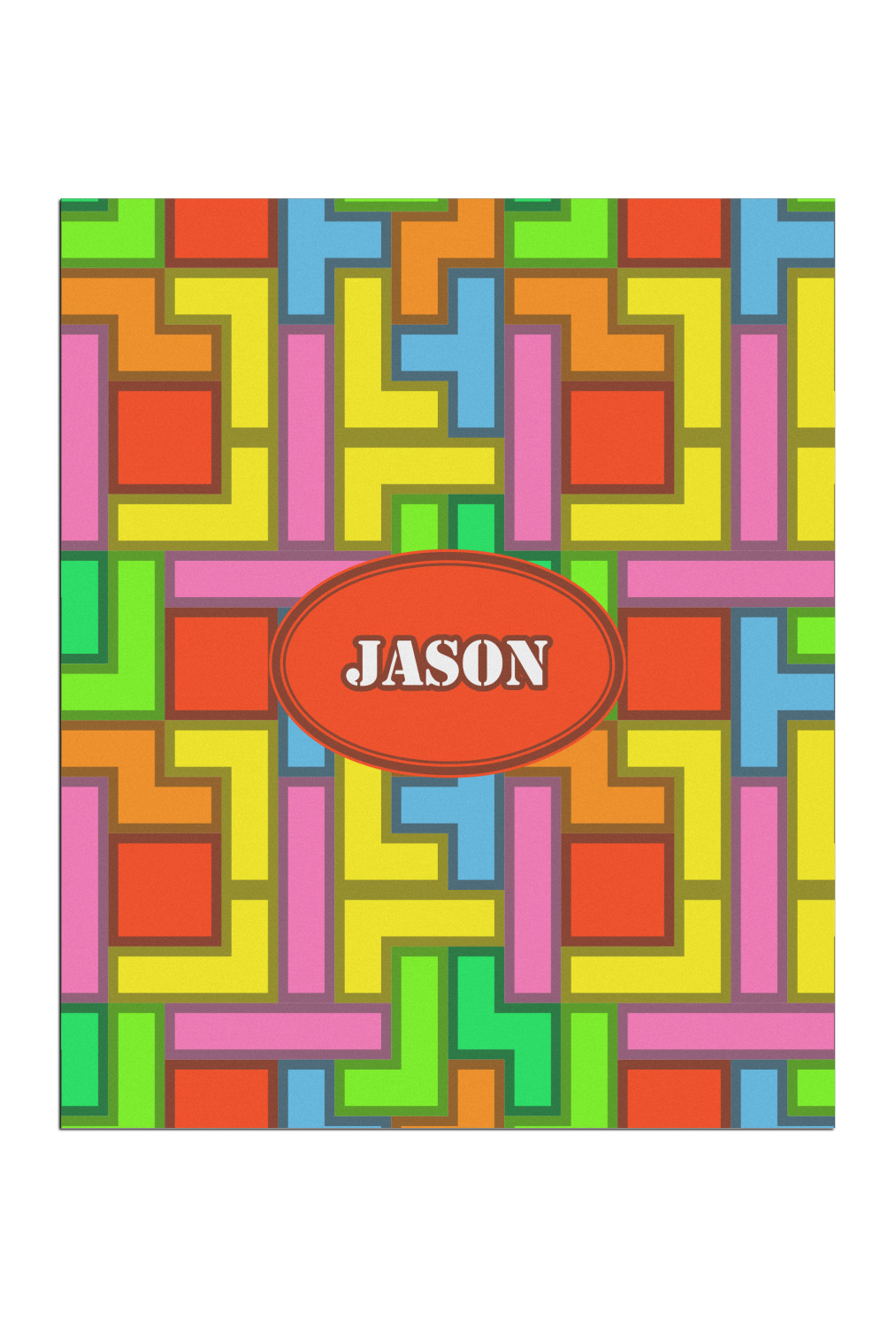 The tetromino print offers all the classic colors and shapes to delight a true gamer. A big oval label breaks up the pattern and highlights the personalization of your choice.