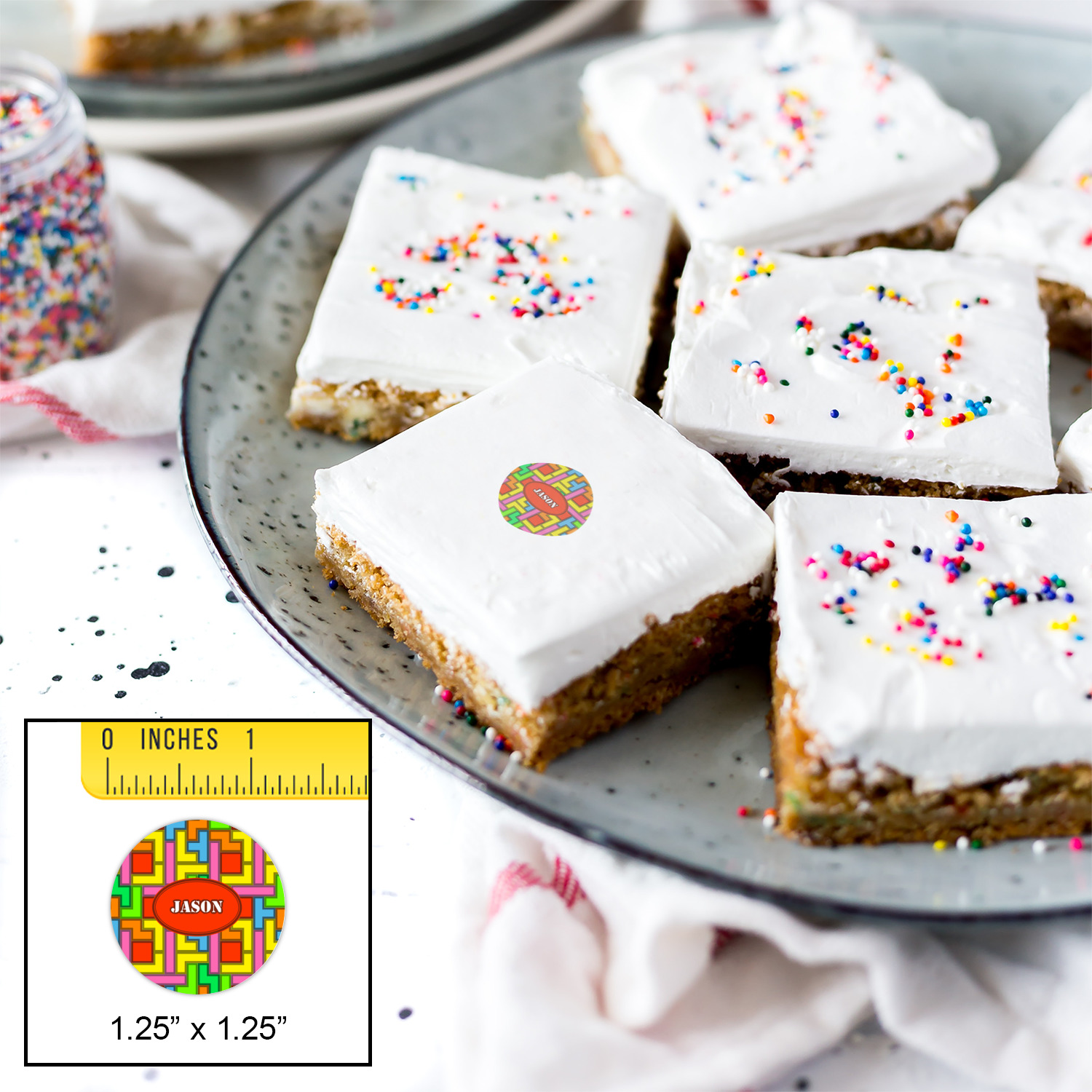 The tetromino print offers all the classic colors and shapes to delight a true gamer. A big oval label breaks up the pattern and highlights the personalization of your choice.