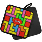 The tetromino print offers all the classic colors and shapes to delight a true gamer. A big oval label breaks up the pattern and highlights the personalization of your choice.
