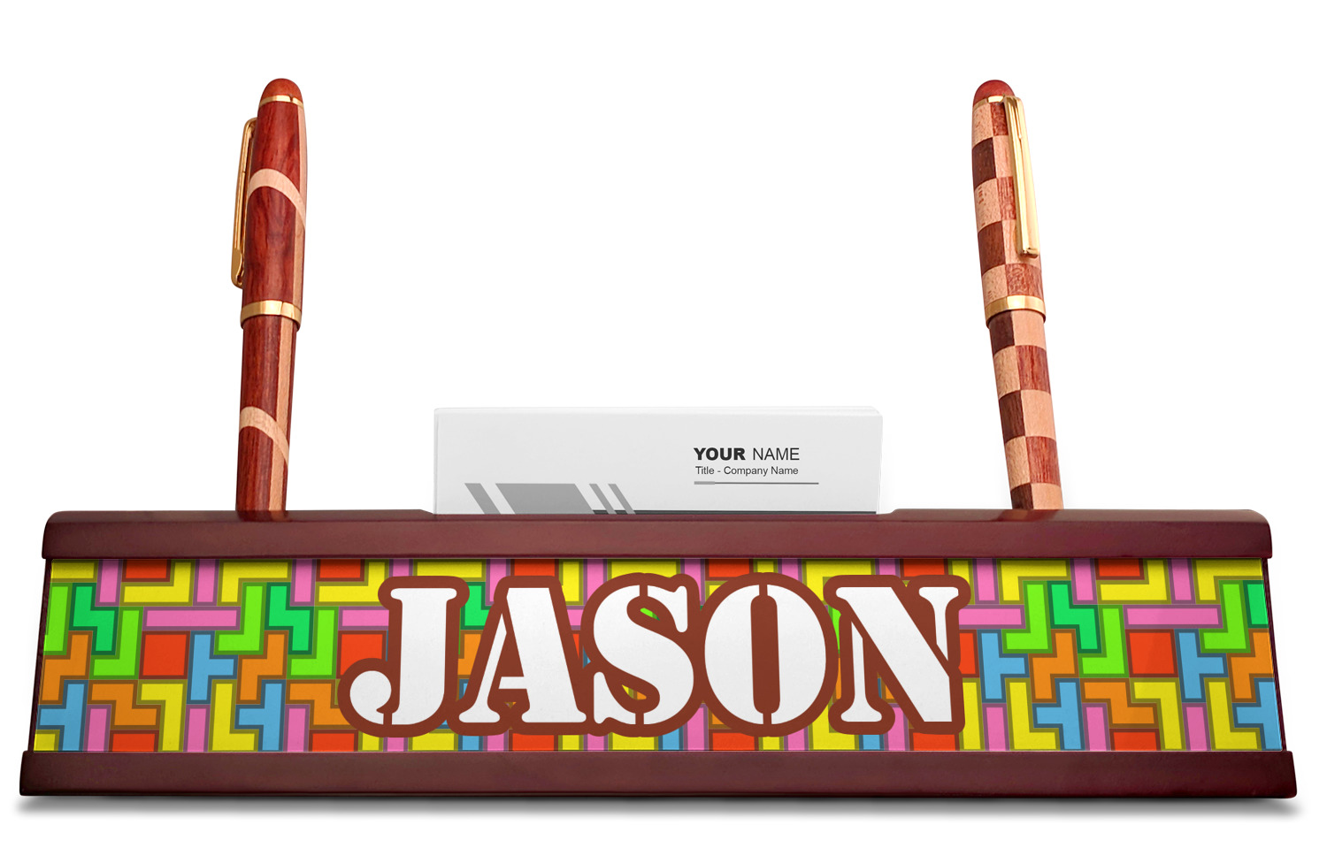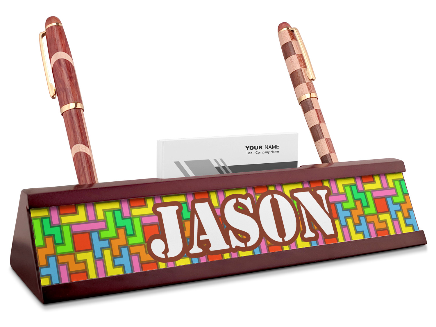 Shape + Symbol Designs for Red Mahogany Nameplates with Business Card Holder