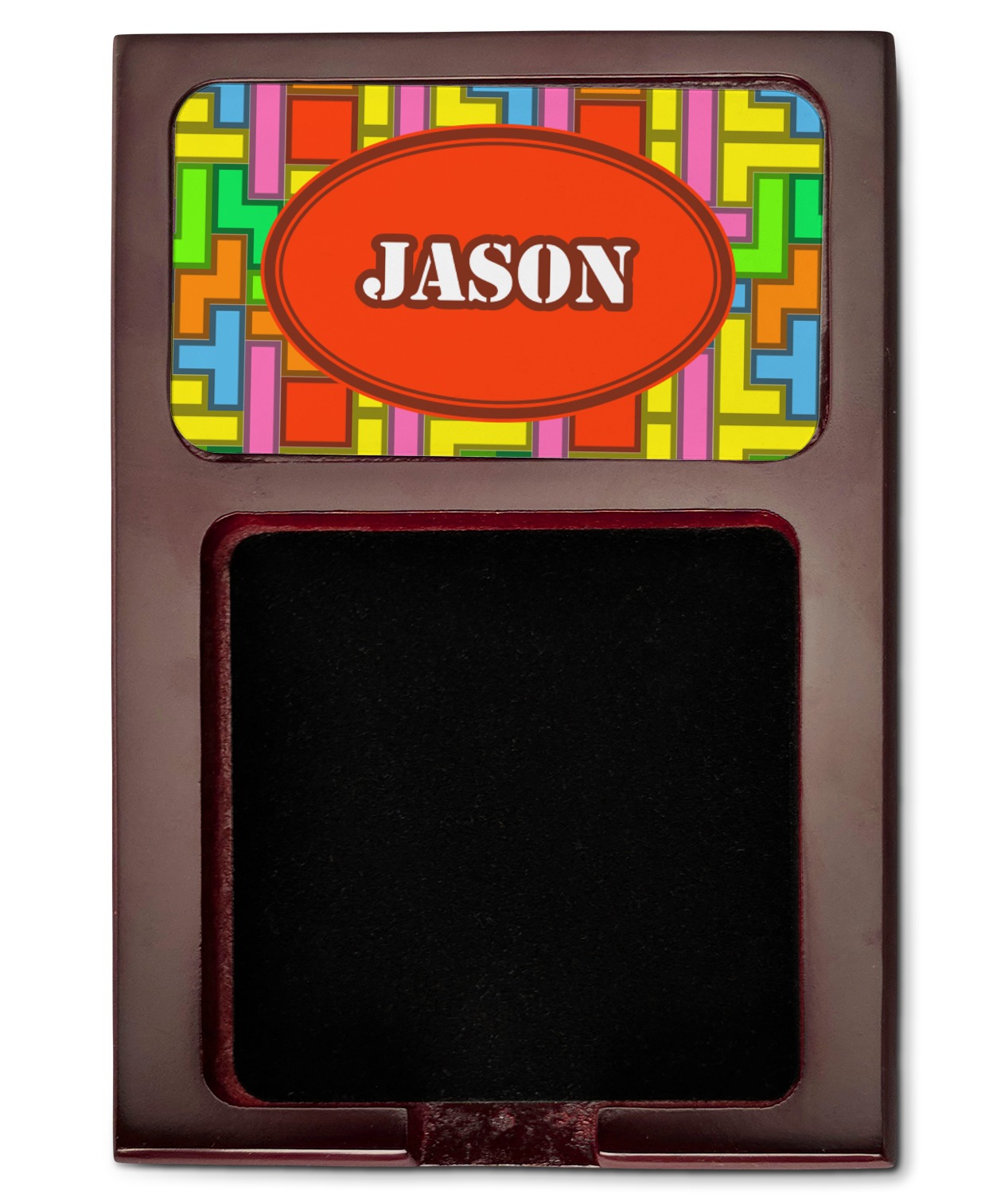 Crafted from a fine mahogany, this post it note holder is in the shade of a dark, cherry color. The dispenser itself is about 4.25 by 6.25 by 0.75 inches. You can place your 3 by 3 inch sticky notes in the indentation below the nameplate. We print your customization onto the nameplate that rests above the velvety indentation.