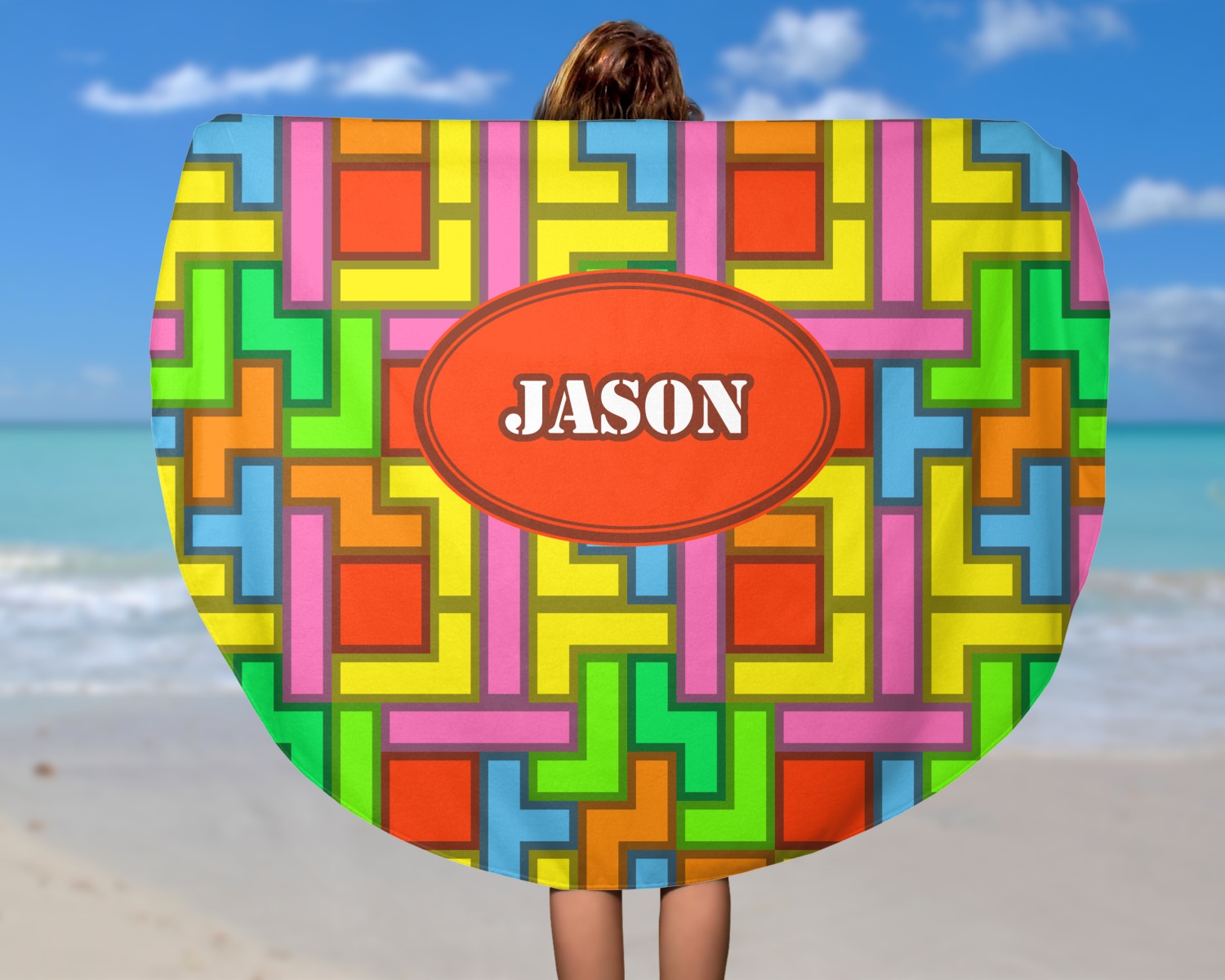 Think out of the box on your next beach, pool, or picnic day in style on your personalized round towel. This must have durable accessory is the perfect size for keeping you, and your possessions out of the sand. Sprawl out in the sun without getting your hands dirty, the unique round design allows for a full range of motion.