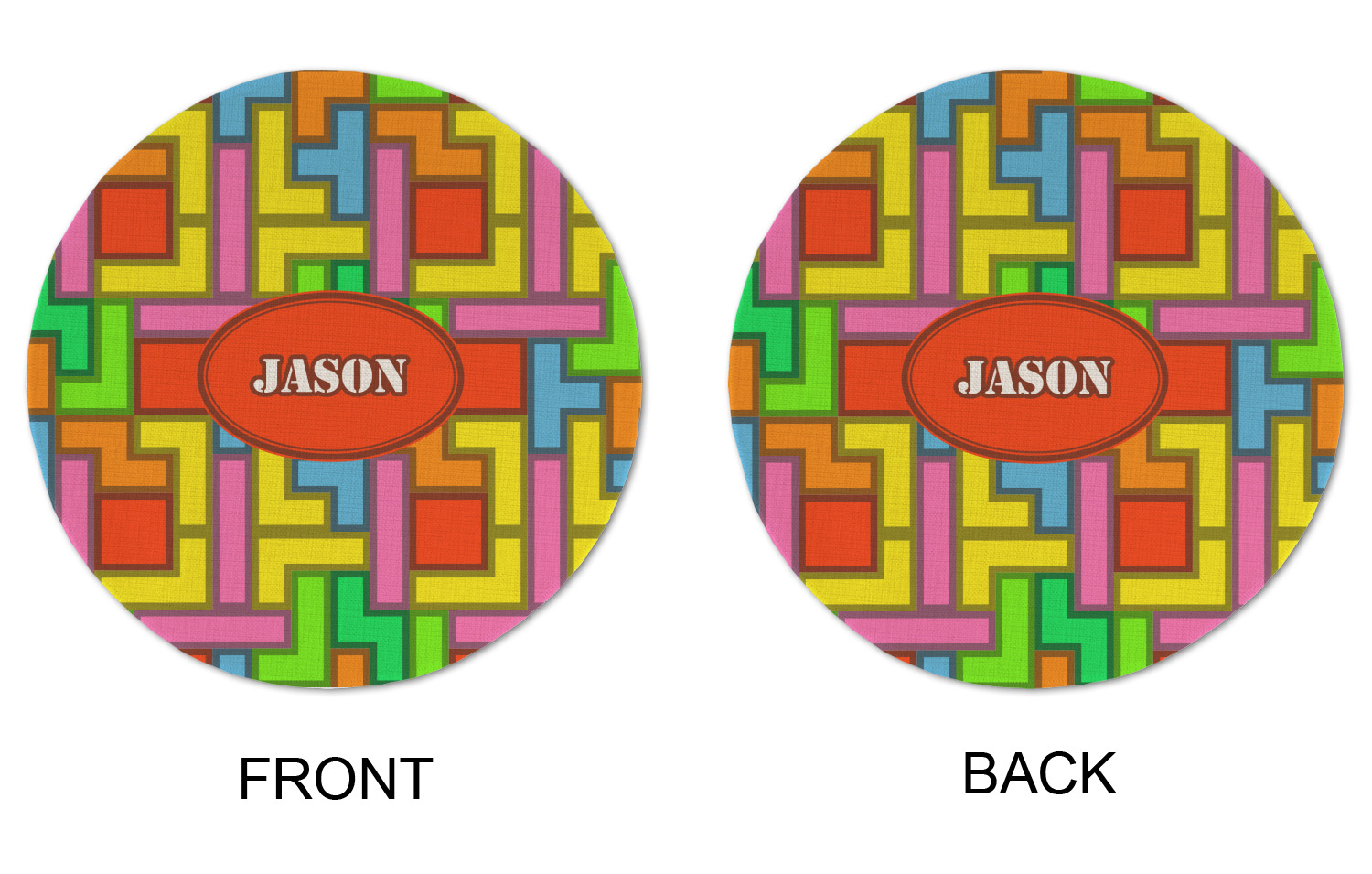 The tetromino print offers all the classic colors and shapes to delight a true gamer. A big oval label breaks up the pattern and highlights the personalization of your choice.