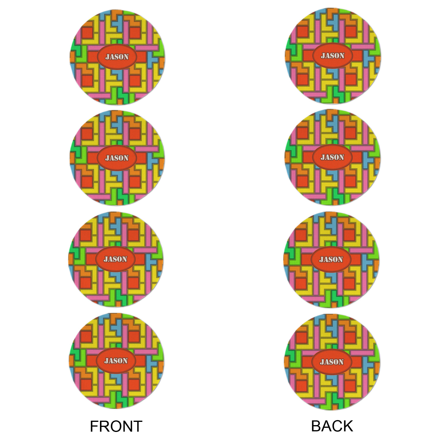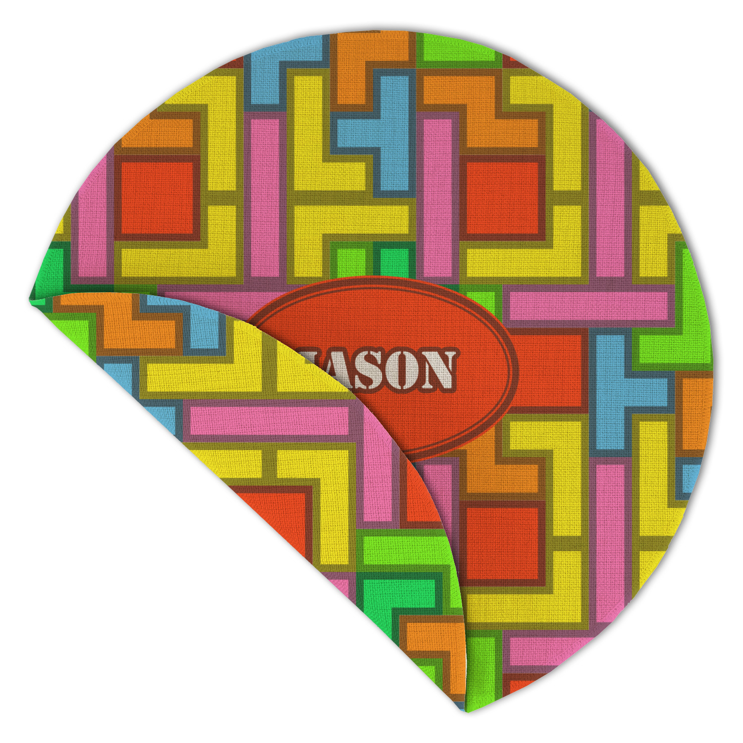 The tetromino print offers all the classic colors and shapes to delight a true gamer. A big oval label breaks up the pattern and highlights the personalization of your choice.