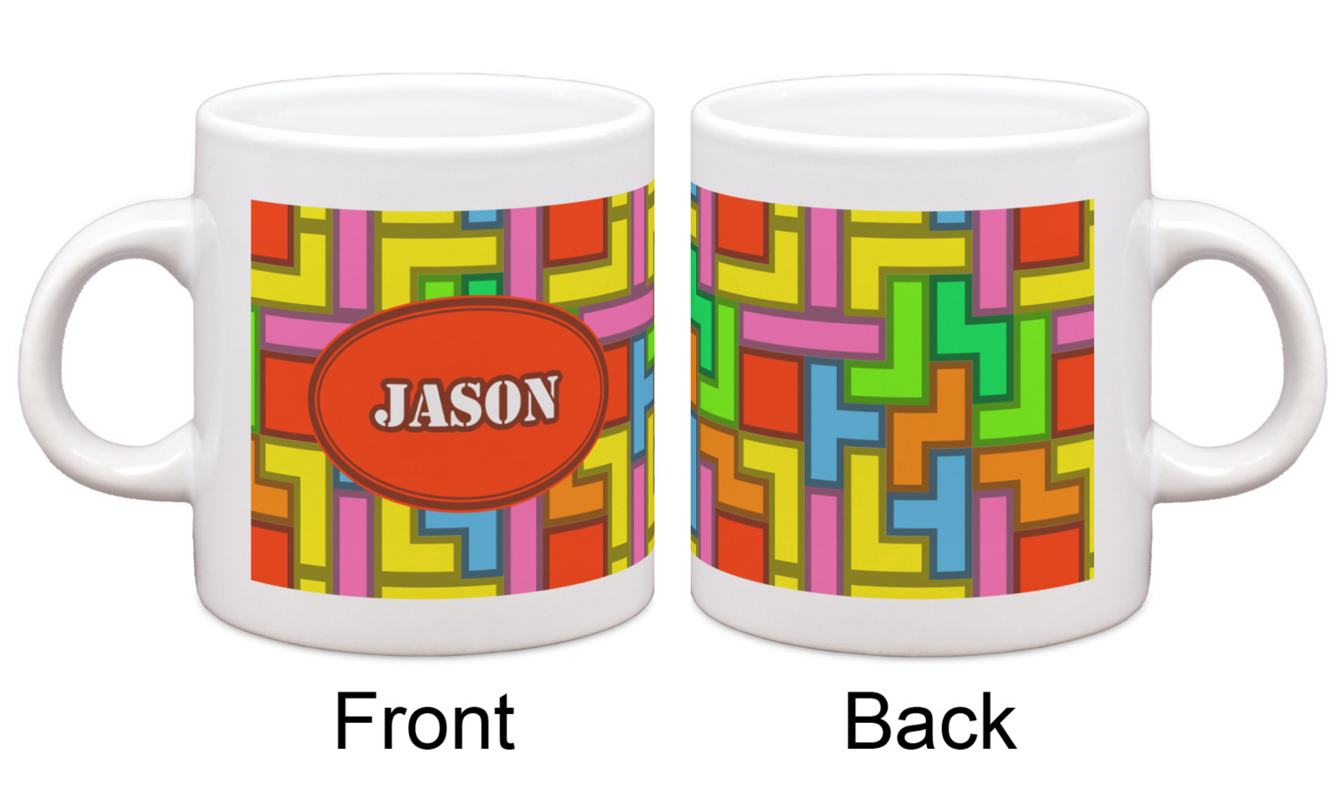 The tetromino print offers all the classic colors and shapes to delight a true gamer. A big oval label breaks up the pattern and highlights the personalization of your choice.